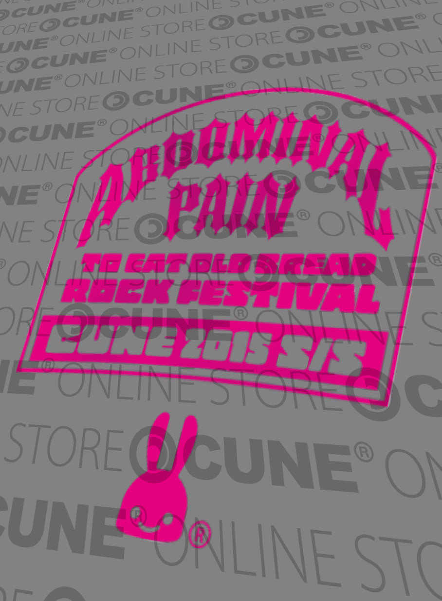 CUNE 2015S/S “OLD BREAD” を締めくくる架空のイベント「古いパンを食べてお腹が痛くなるロックフェスティバル」の物販をイメージして作られたTシャツ。
