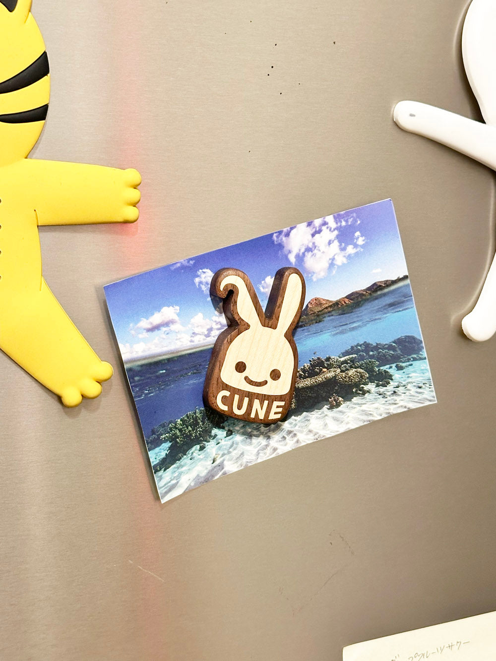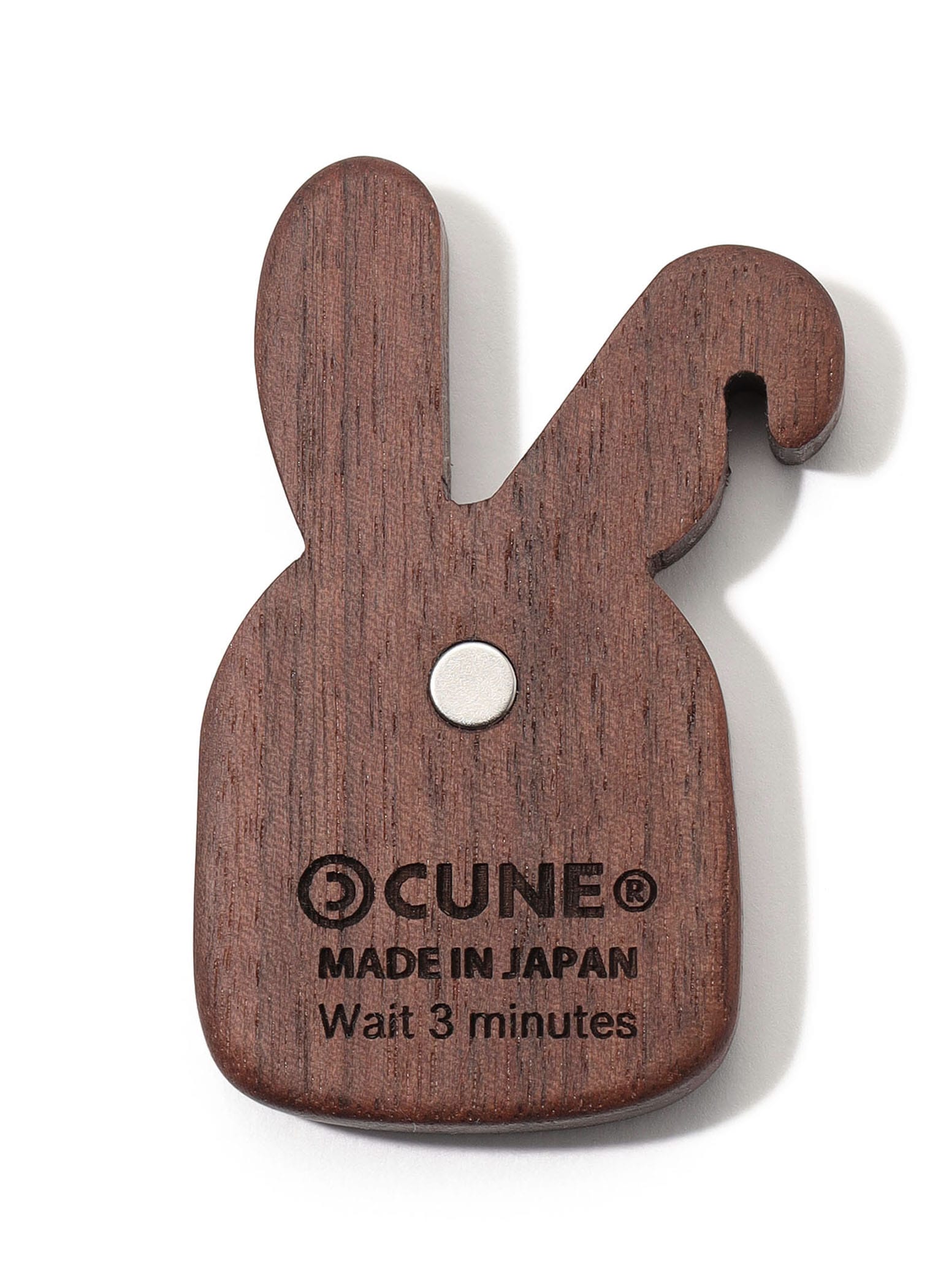 背面にマグネットがついたCUNEウサギ。マグネットだけでなく、ヌードルホルダーやコップのふちにつけたり、色々な使い方ができます。