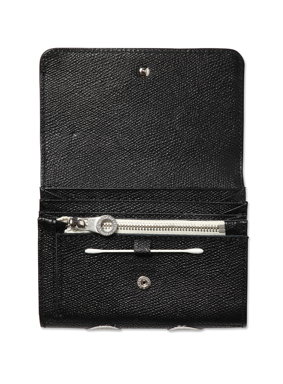 シボ加工を施した柔らかい牛革を使用した財布。ジップはスムーズな開閉が可能なYKK社のEXCELLAを採用し、オリジナルスライダーを使用しています。内部はお札入れが1箇所とファスナー小銭入れ、カード入れは4箇所、綿棒1本を挿せるホルダーが付いています。バネホックはPRYM社(元FIOCCHI社)製のものを採用しています。オリジナル桐箱付きです。※本商品は天然皮革を使用しています。 天然皮革は革本来のシミや皺、色ムラ、小さな傷等がある場合がありますが、天然皮革である証としてご理解ください。 革の個性による返品・交換は承りかねますので、あらかじめご了承ください。