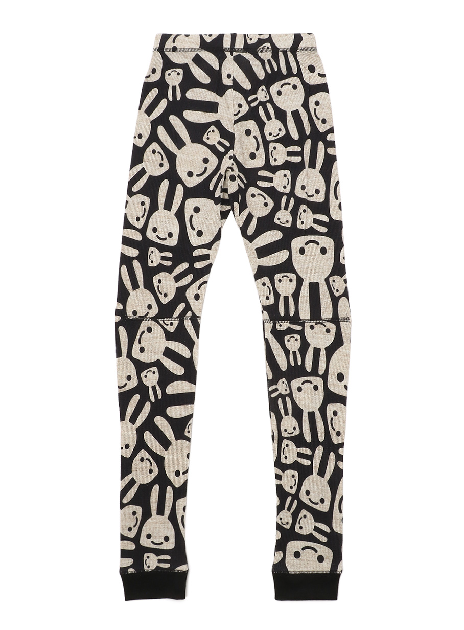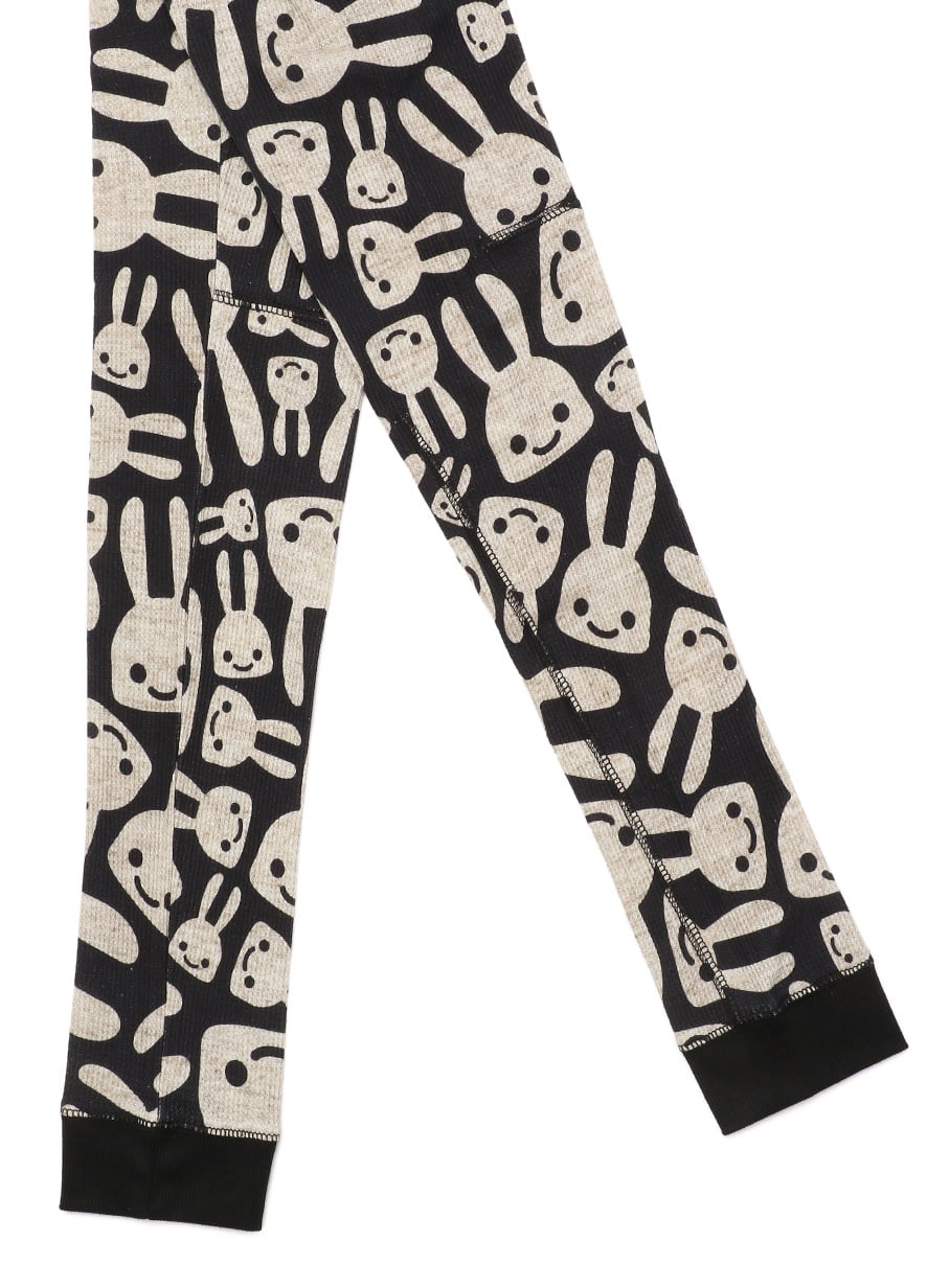 オリシ゛ナルフ゜リントを施した綿ワッフル生地を使用したワッフルパンツ。股下には菱形マチのある仕様となっており、動きやすいように設計されています。膝裏や前身頃にあまり意味のないダーツを入れています。ウエストには紐を通してあります。