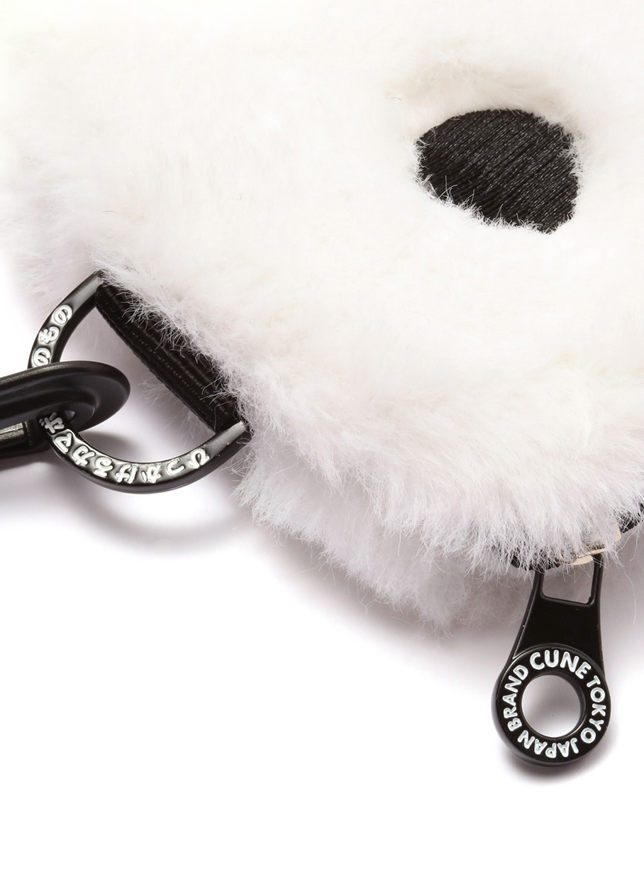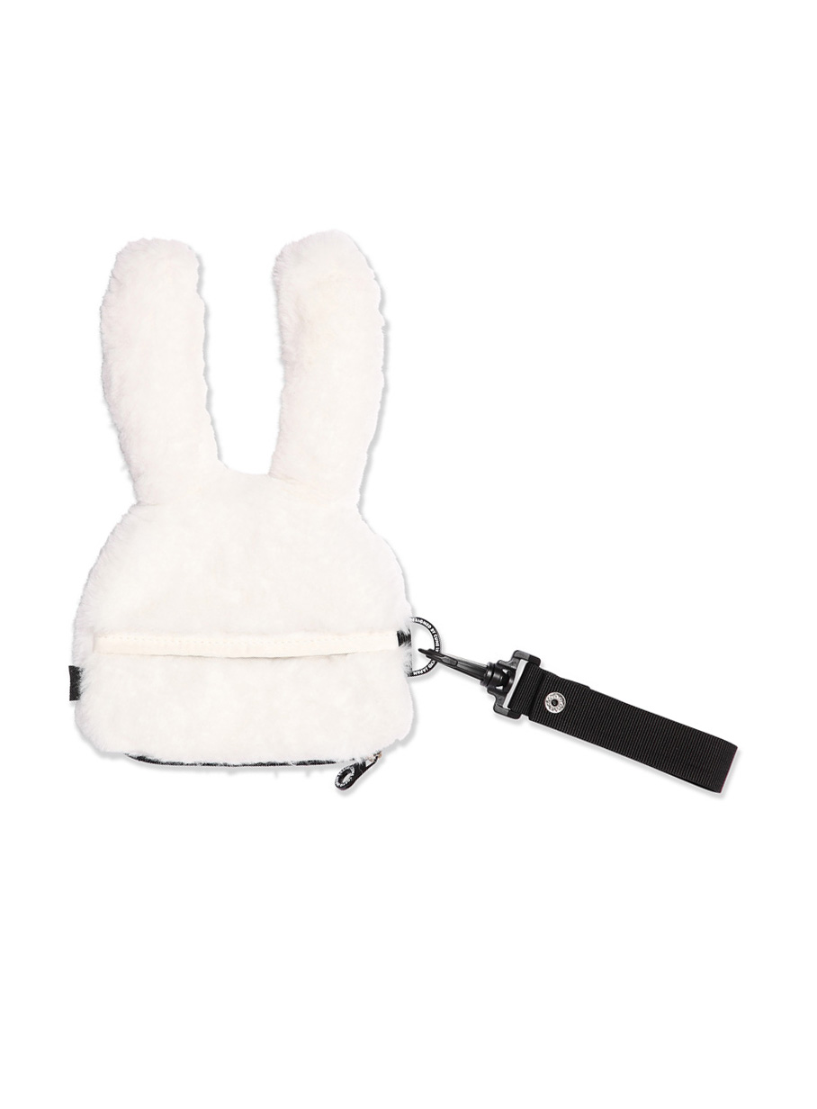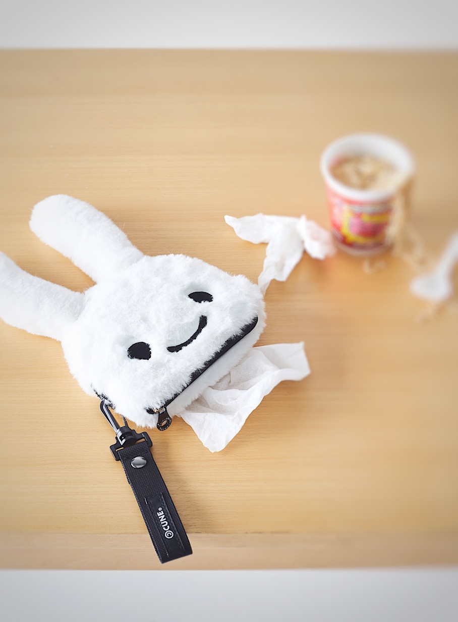うさぎの形をしたふわふわ素材のポーチ。背面側はポケットティシュを入れられる仕様になっています。