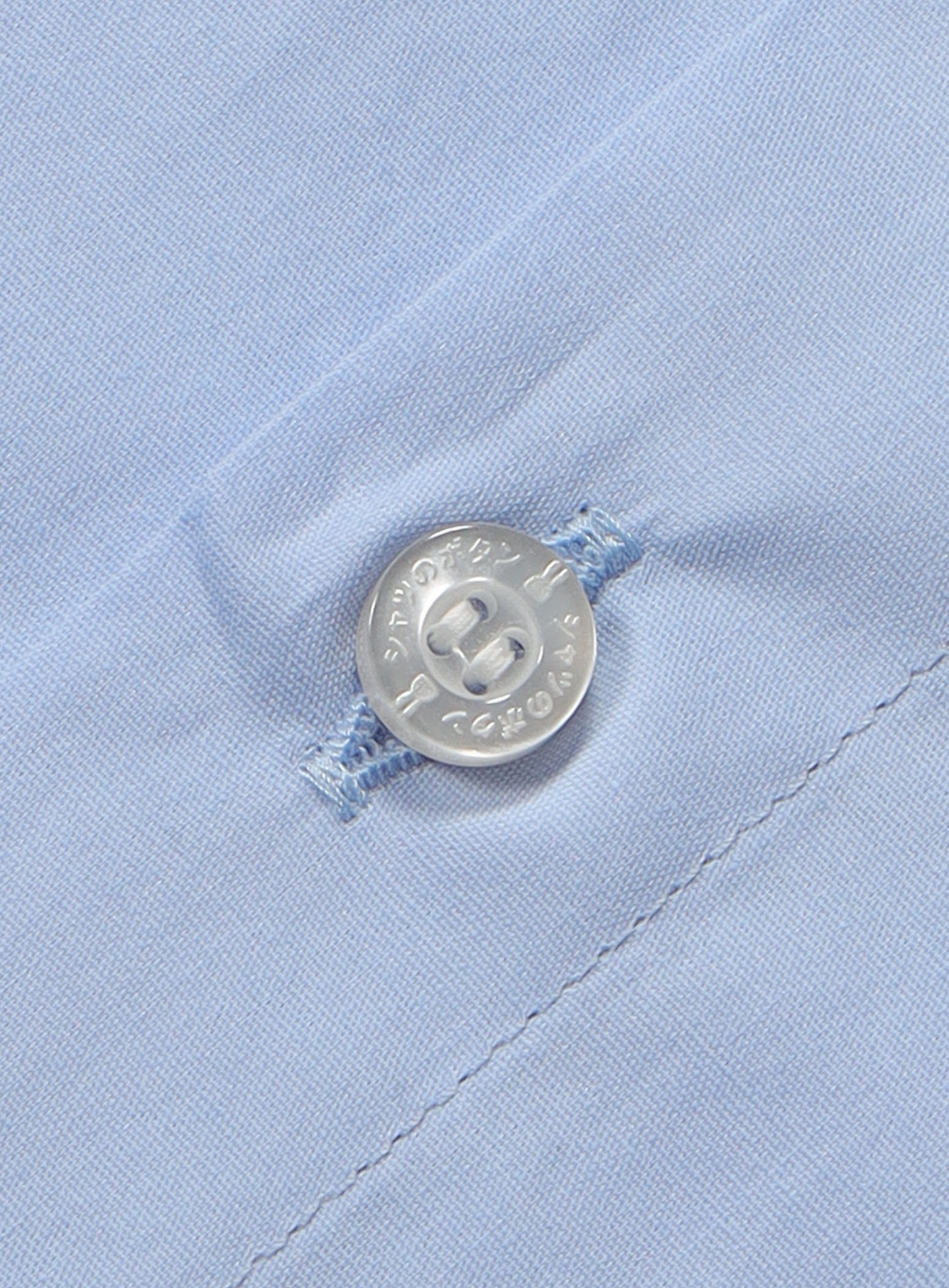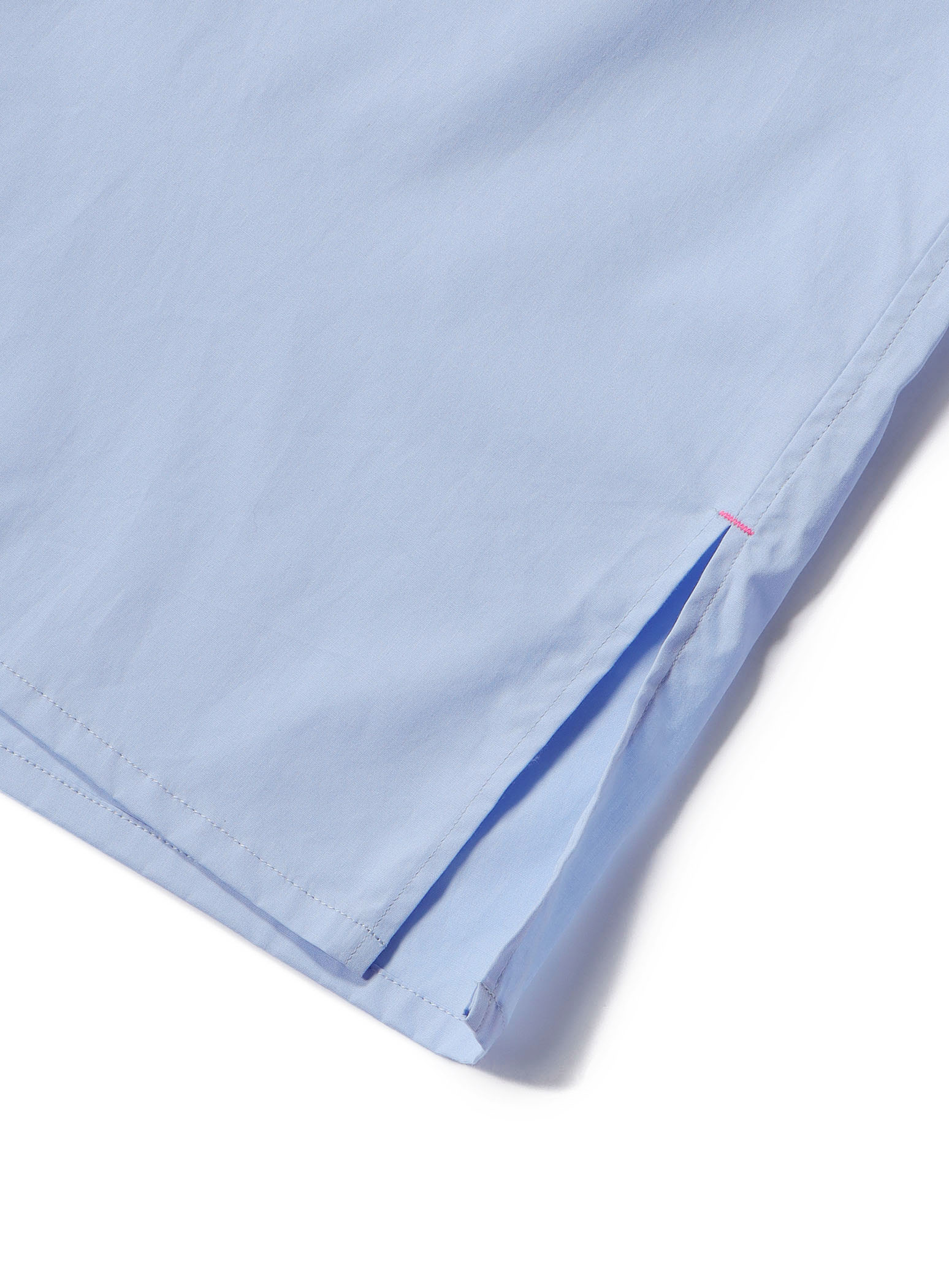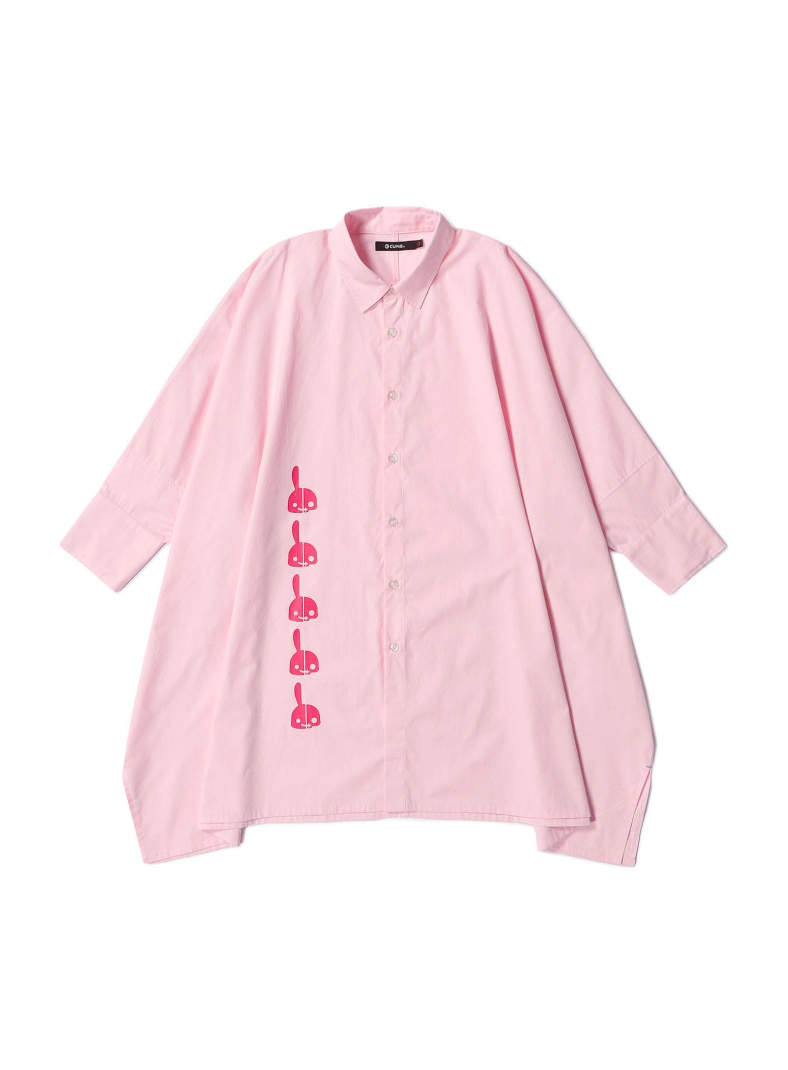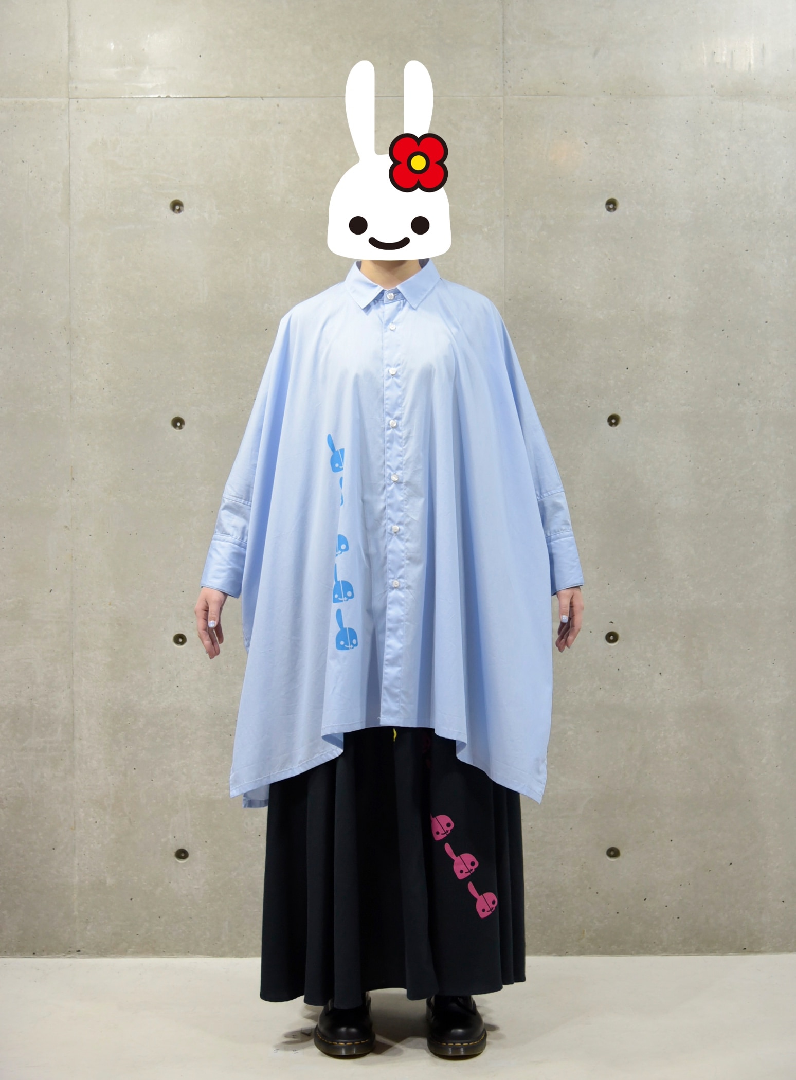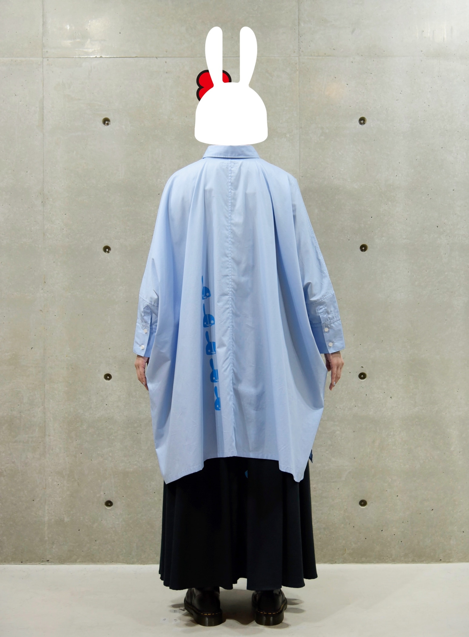 広げると身頃が四角いロングシャツ。着用すると程よいドレープ感が出ます。