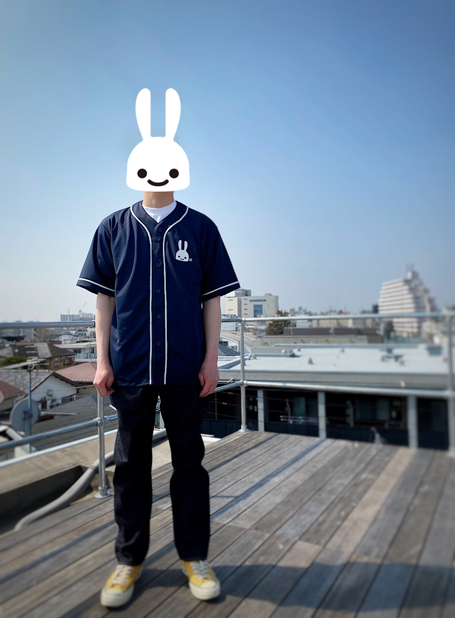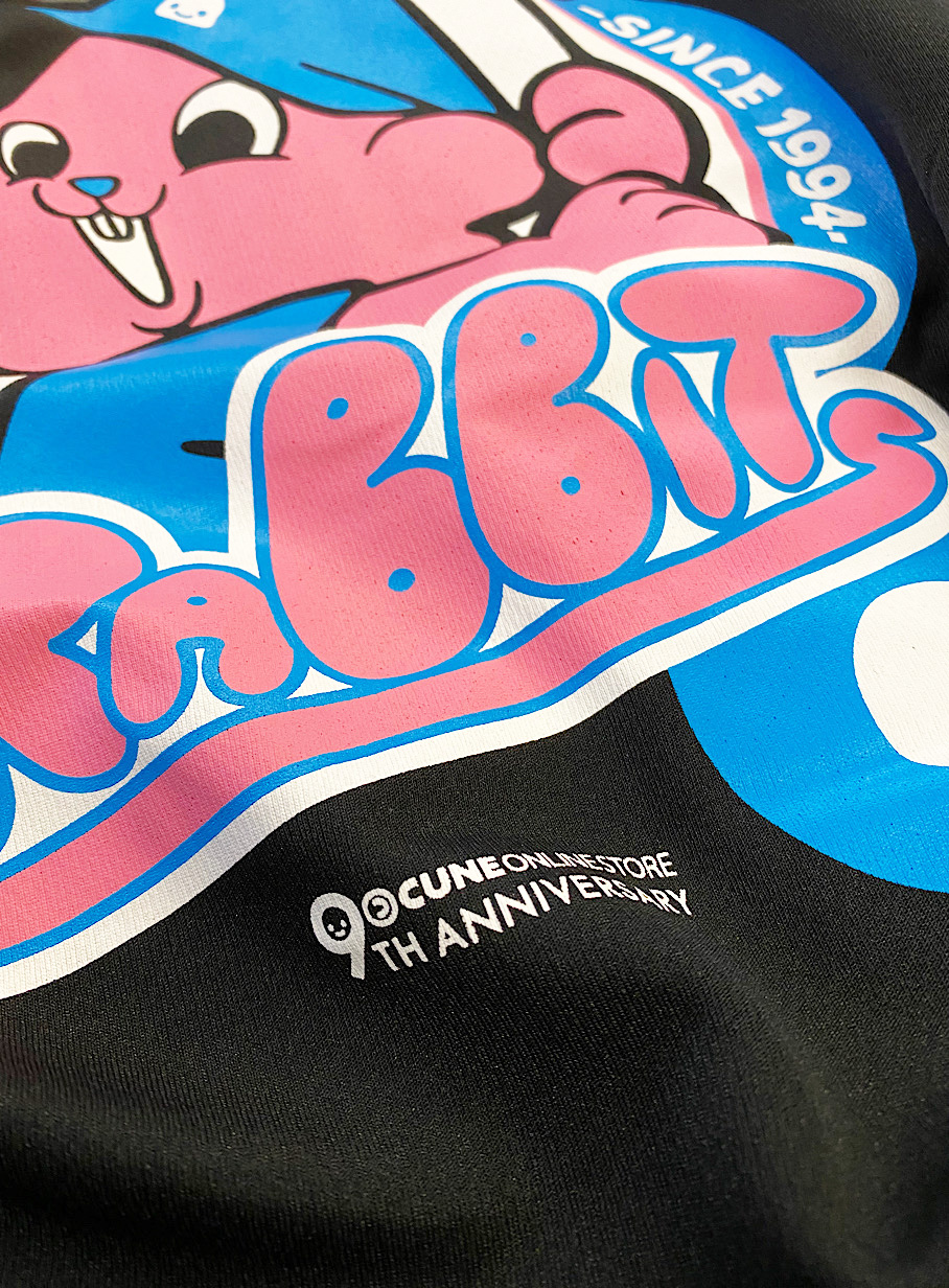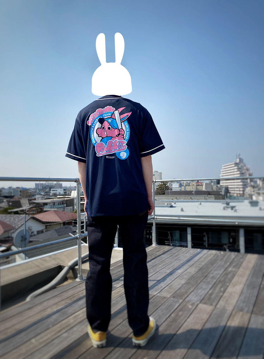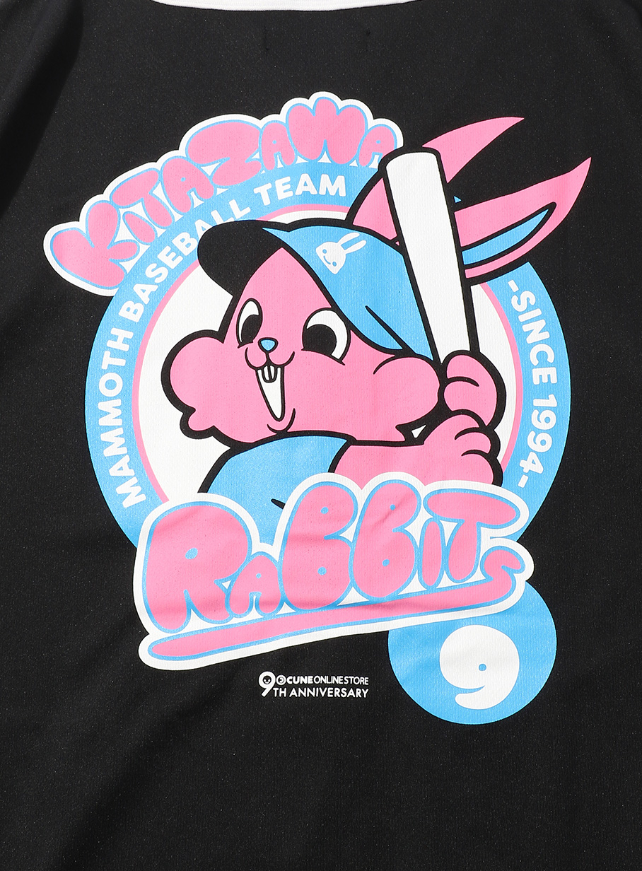 オンラインストア9周年を記念して作られたベースボールシャツ 北沢ラビッツ。メッシュ生地を使用しているので吸水速乾性に優れています。United Athleボディを使用しています。