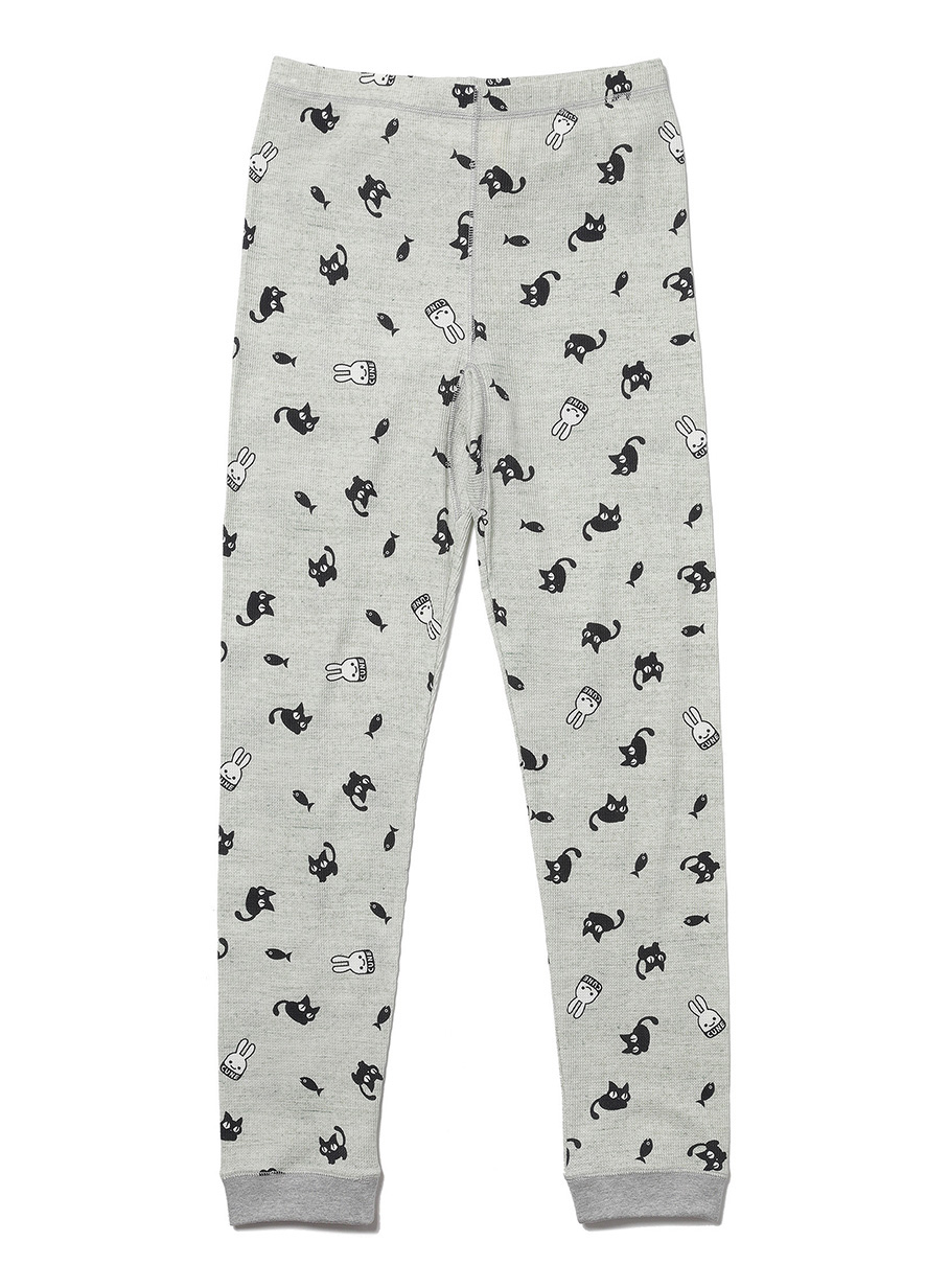オリジナルプリントを施した綿ワッフル生地を使用したワッフルパンツ。