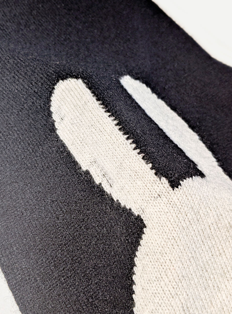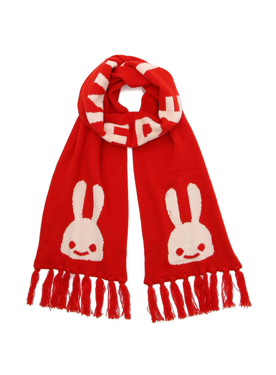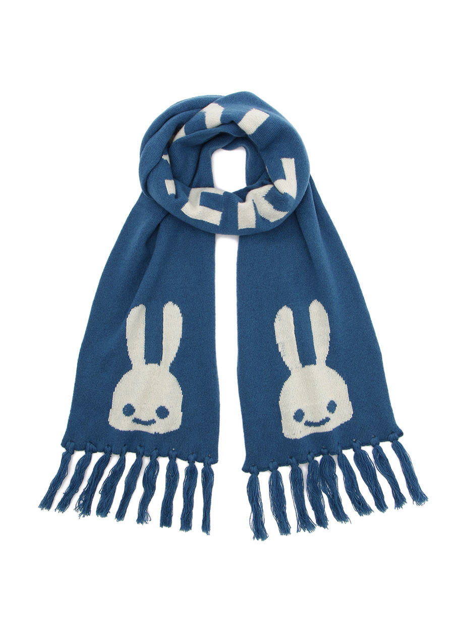 ウサギの柄にマフラーの地の色が見える場合がありますが、編みの性質上のもので不良ではありません。あらかじめご了承ください。