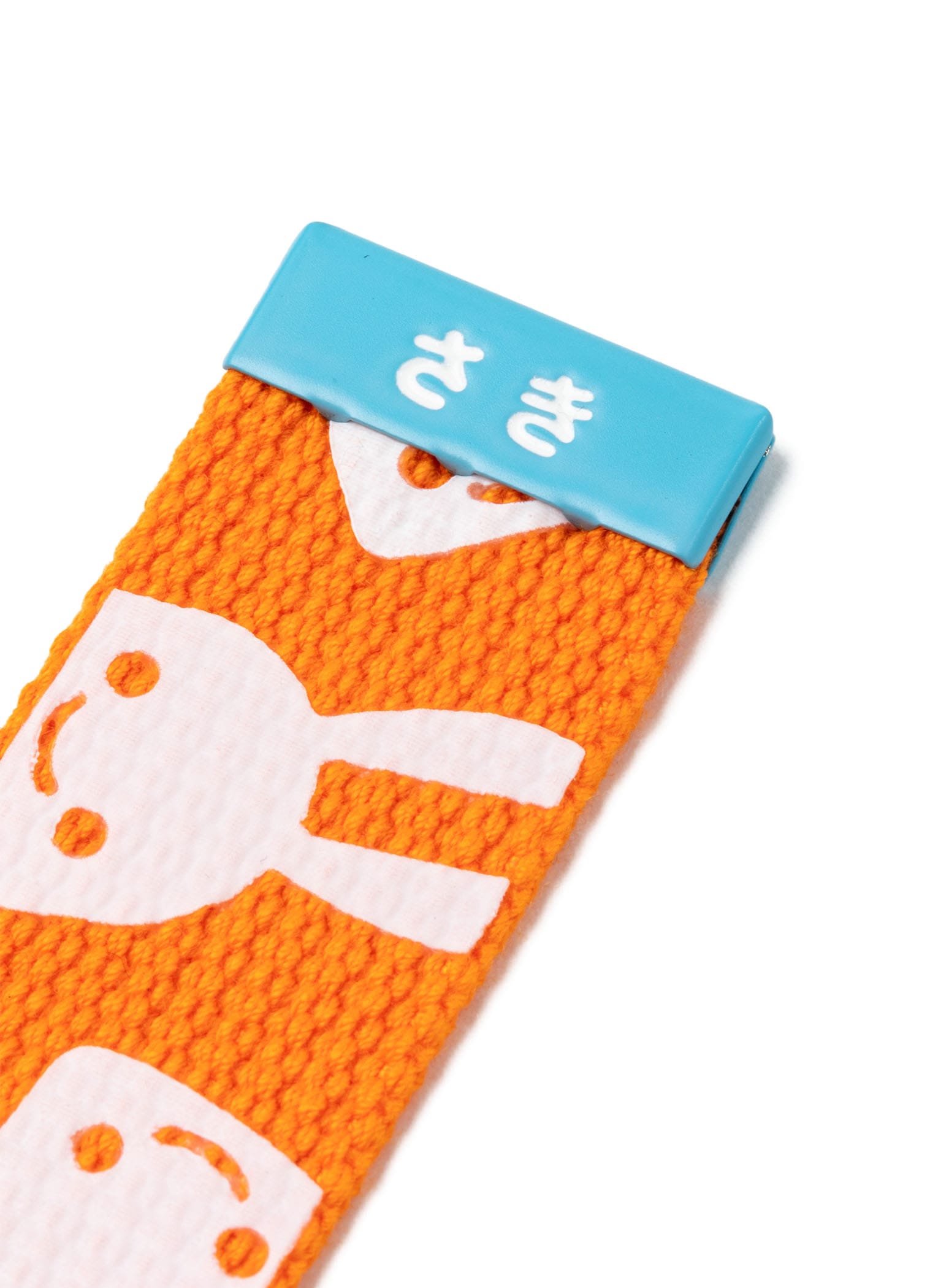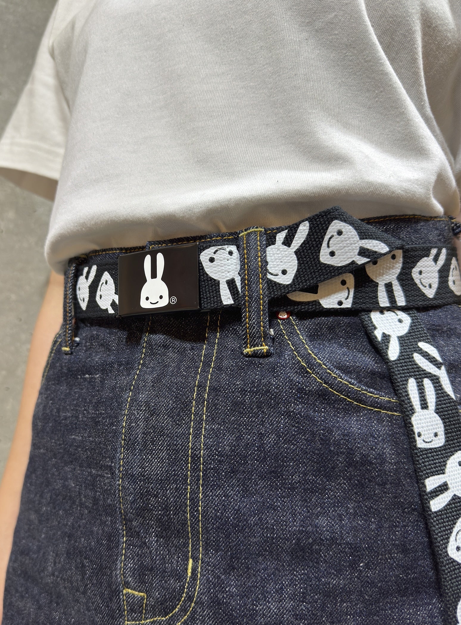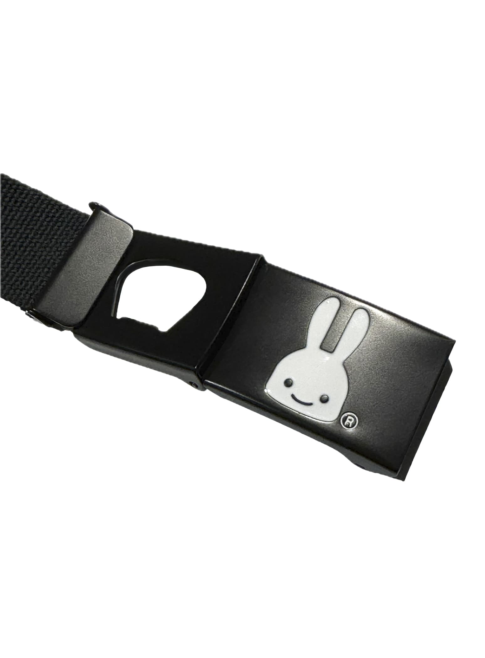 ウサギがプリントされているベルト。剣先部分の裏側にもウサギがプリントされているため、垂らしてつけた時もウサギが見えます。バックル部分は栓抜きとしても使えます。
