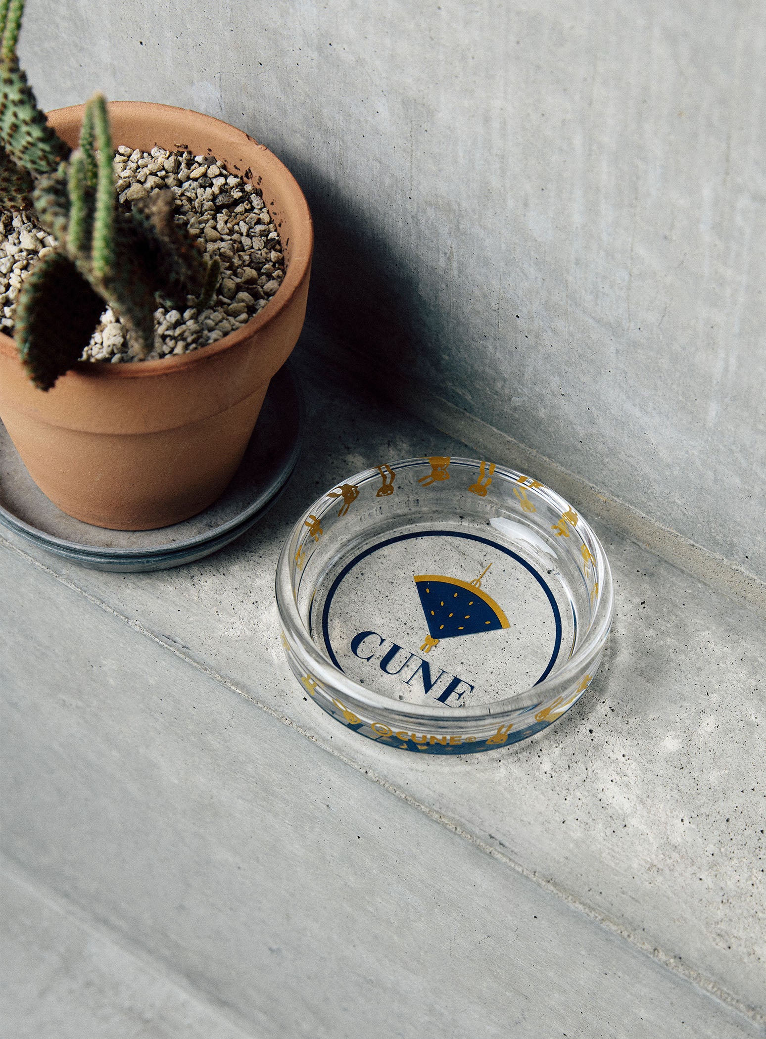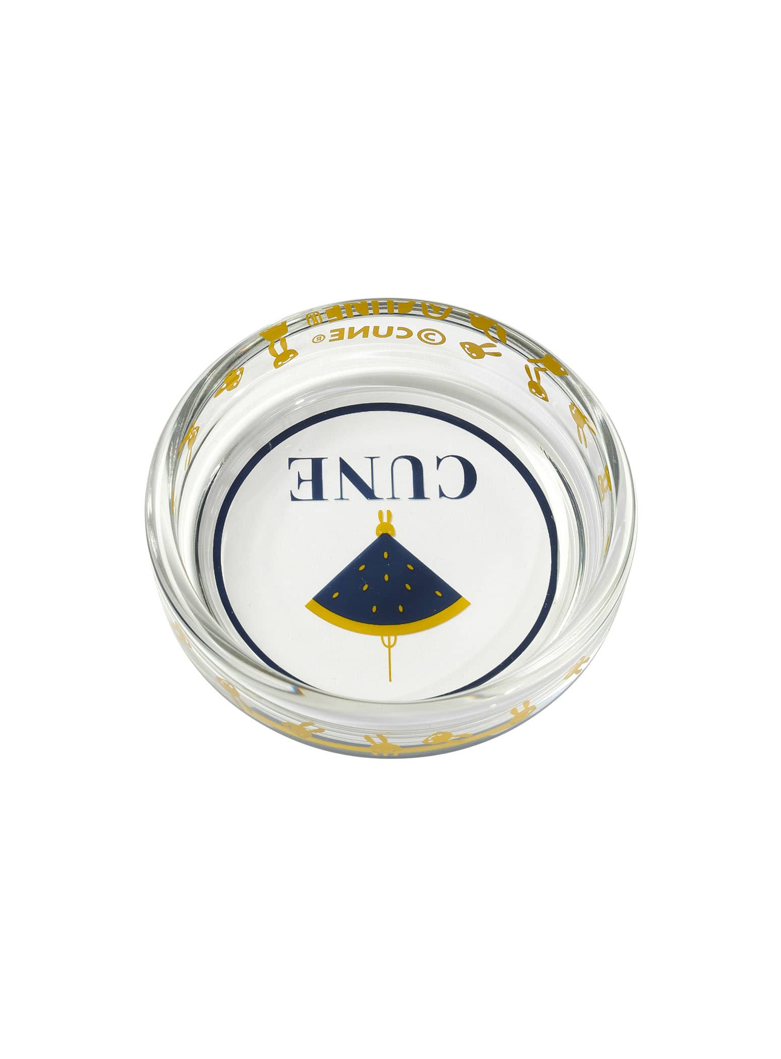 どこかで見たことあるようなデザインがプリントされたガラストレー。こまごましたものを入れるのにぴったりです。灰皿としてもご使用いただけます。