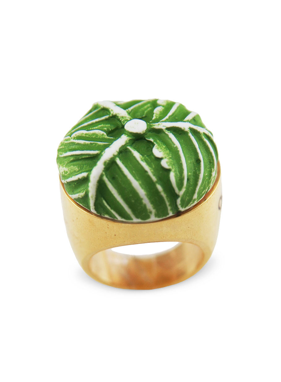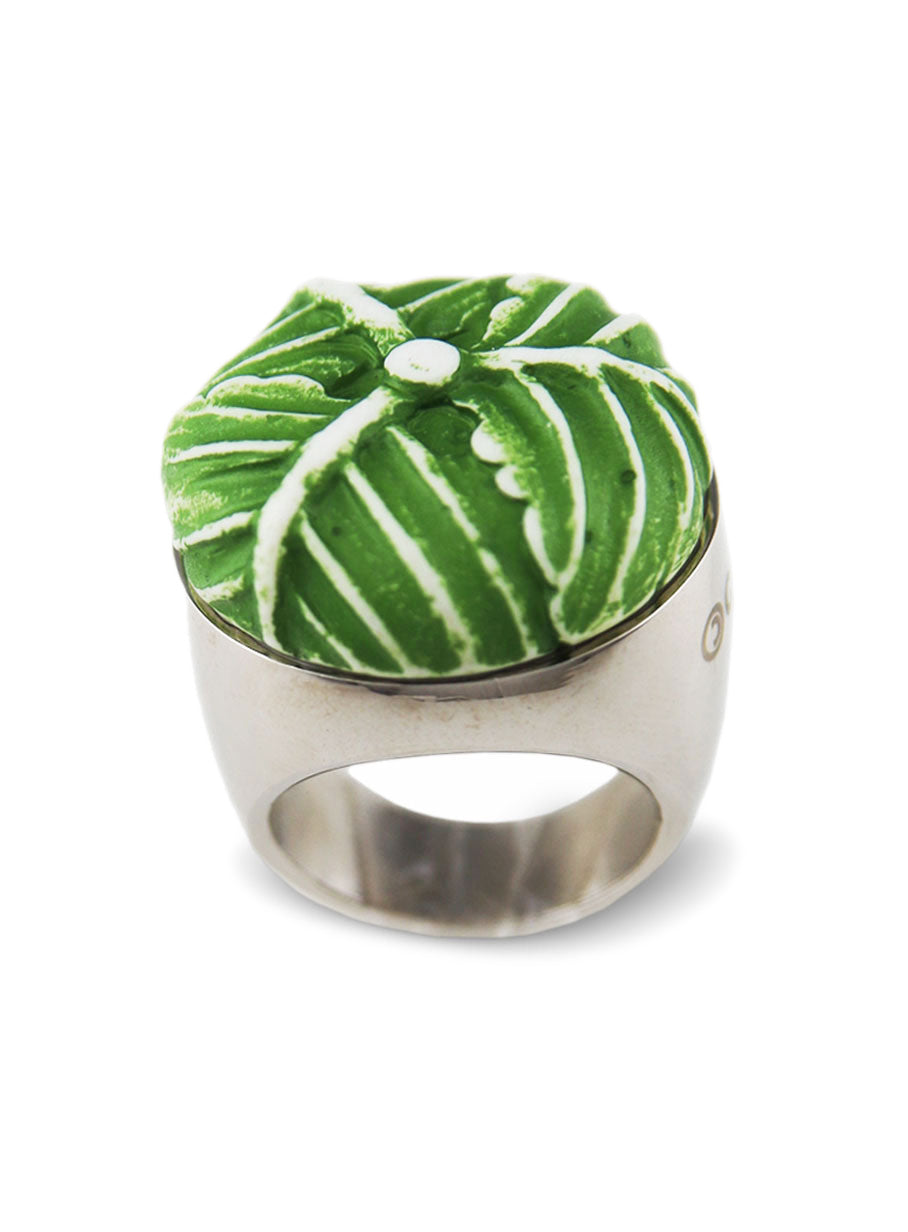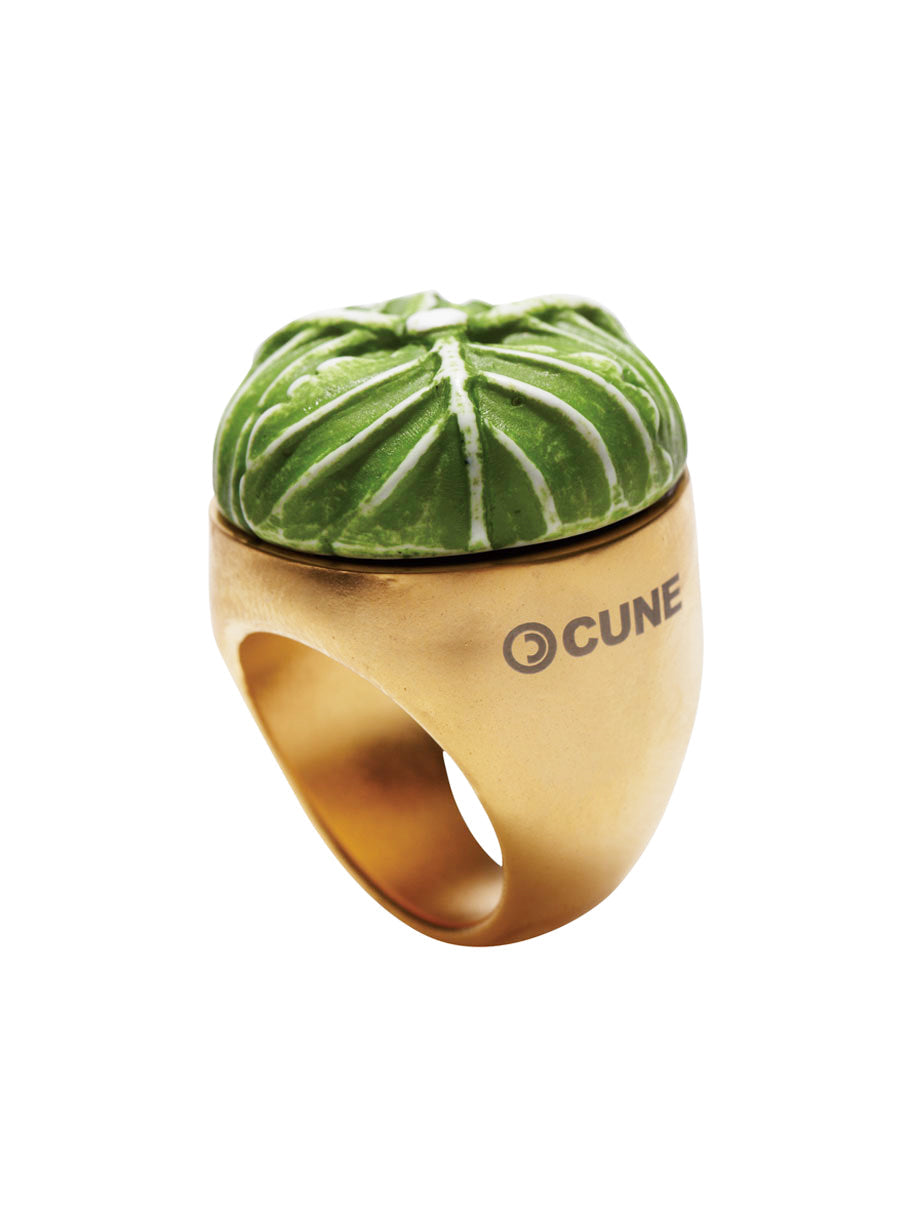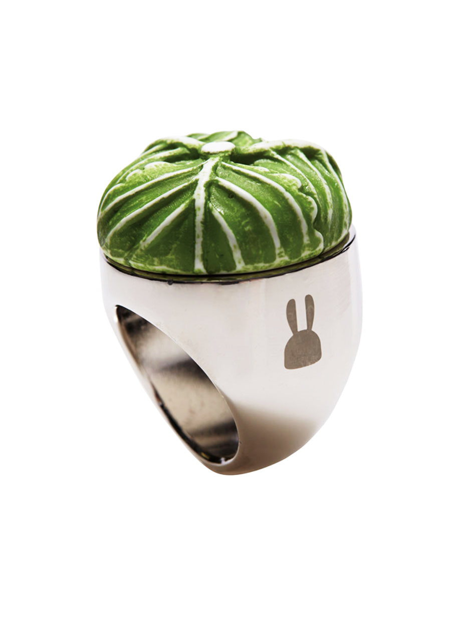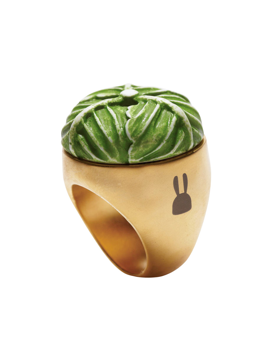 樹脂で作ったキャベツリング。このシーズンはキャベツの芯が主役なのでひっくり返っています。このキャベツの原型は社内で作りました。この商品はCUNE実店舗で過去に発売された商品です。現在CUNEの実店舗では販売されておりません。