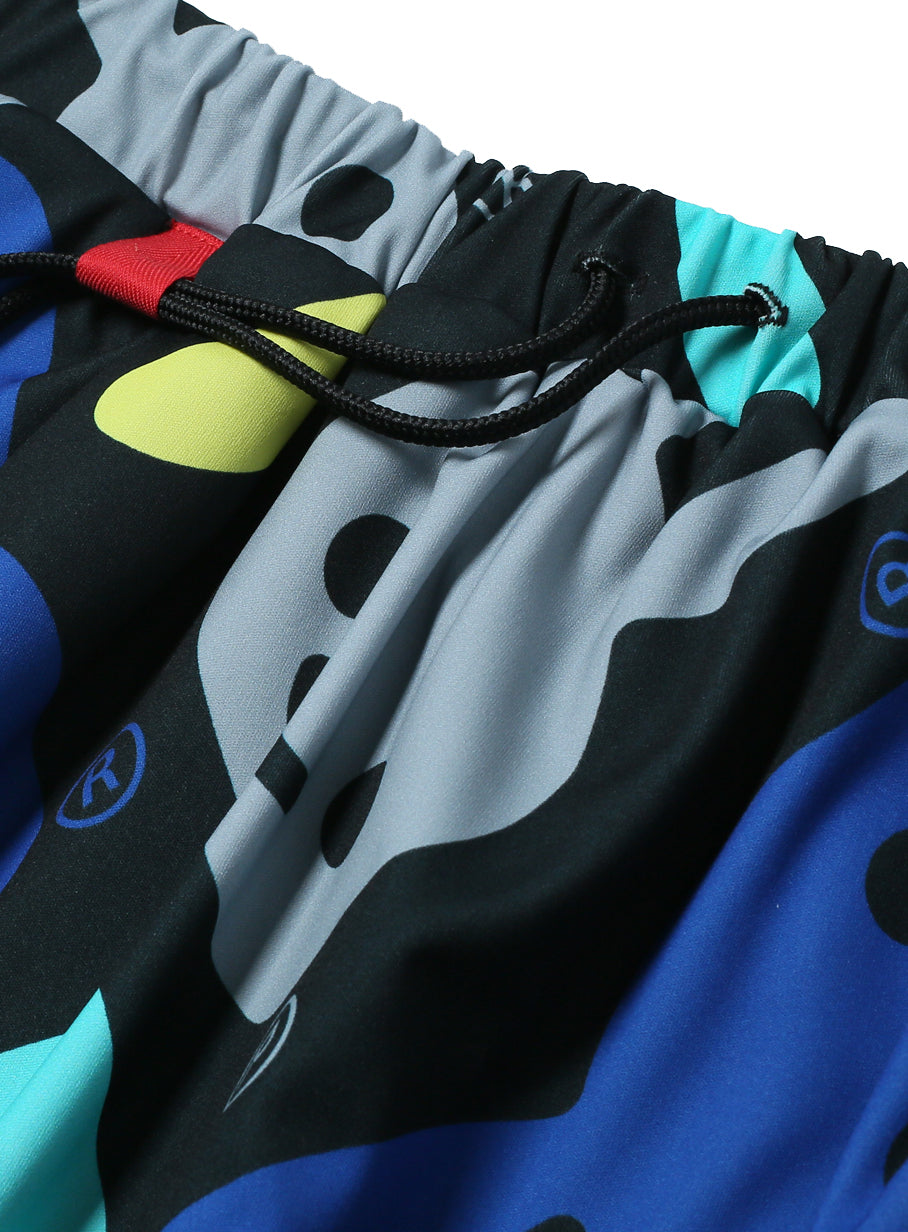 ウサギが総柄でプリントされているジャージスカート。ややゆったり目のシルエットで、ウエストは紐で縛れます。赤いテープにウエストの紐を引っ掛けられるようにしました。