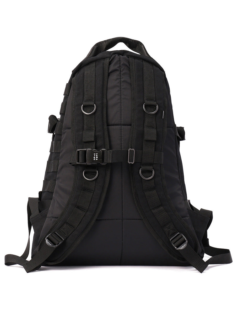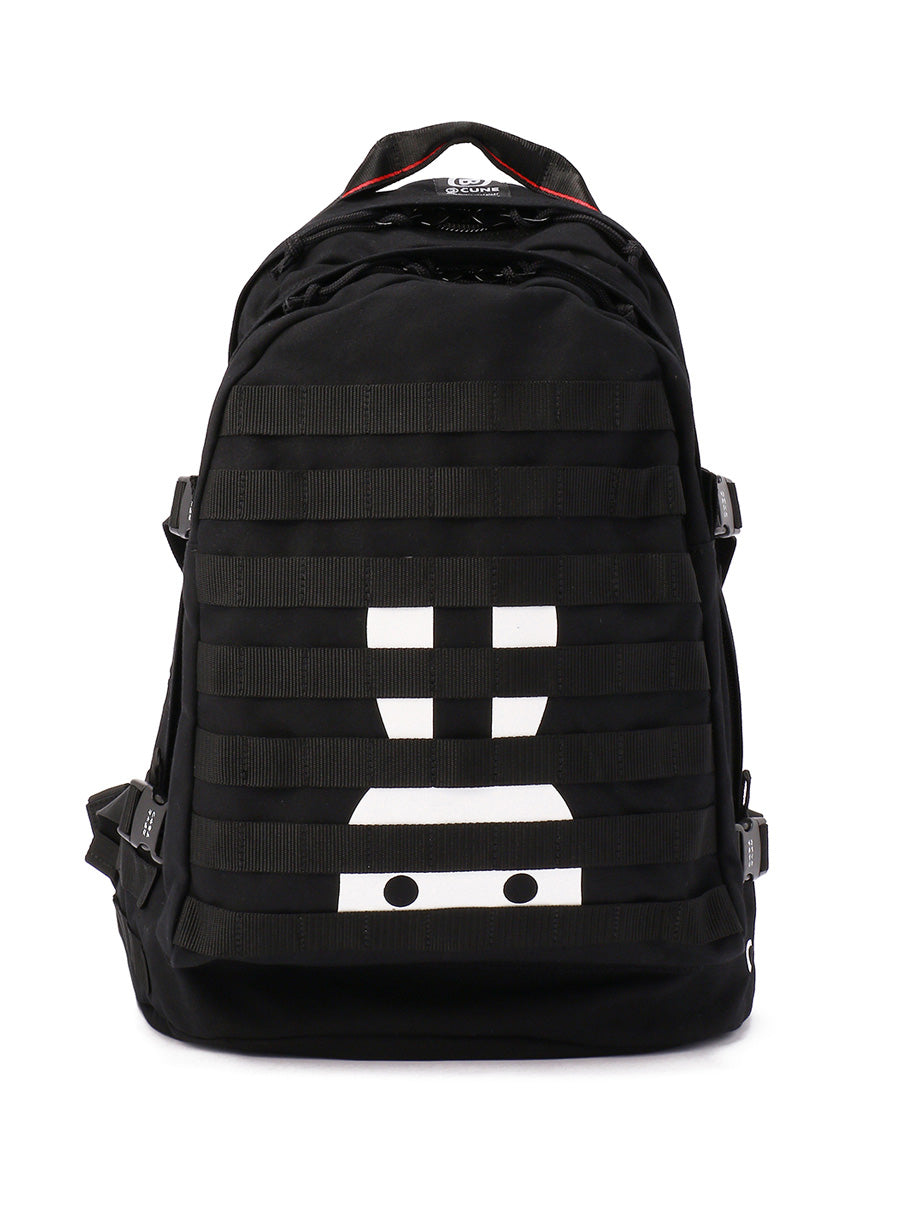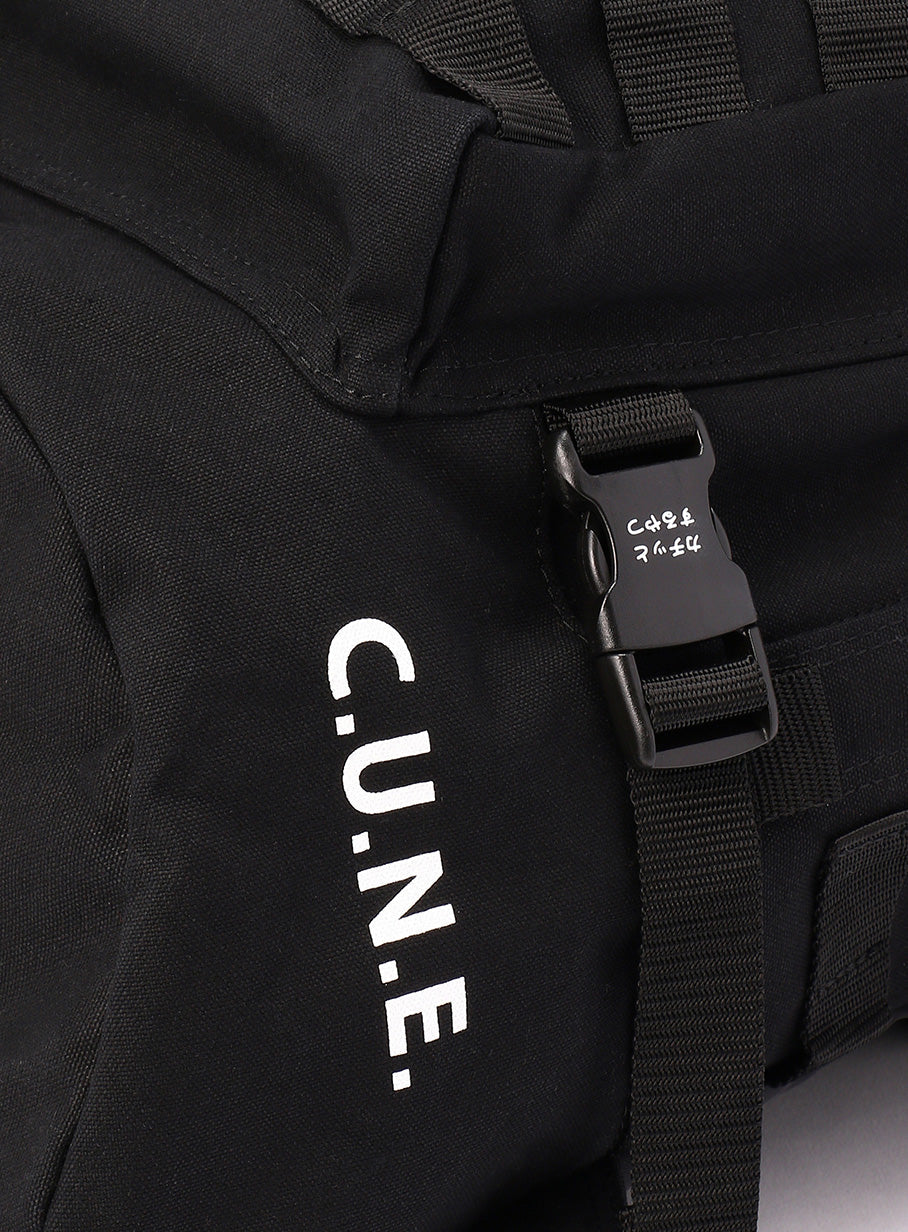 オンラインストア限定のCMS うさちゃんバックパック。CMSはCUNE MOLLE SYSTEMという意味です。パラフィン加工により撥水性を兼ね備えた11号帆布を使用していてパラフィン加工ならではのエイジングを楽しめます。うさちゃんぬいぐるみが6匹ついてきて、移動、取り外しが可能です。縫い付けられているテープに同じ規格のバックやポーチが取り付けられます。