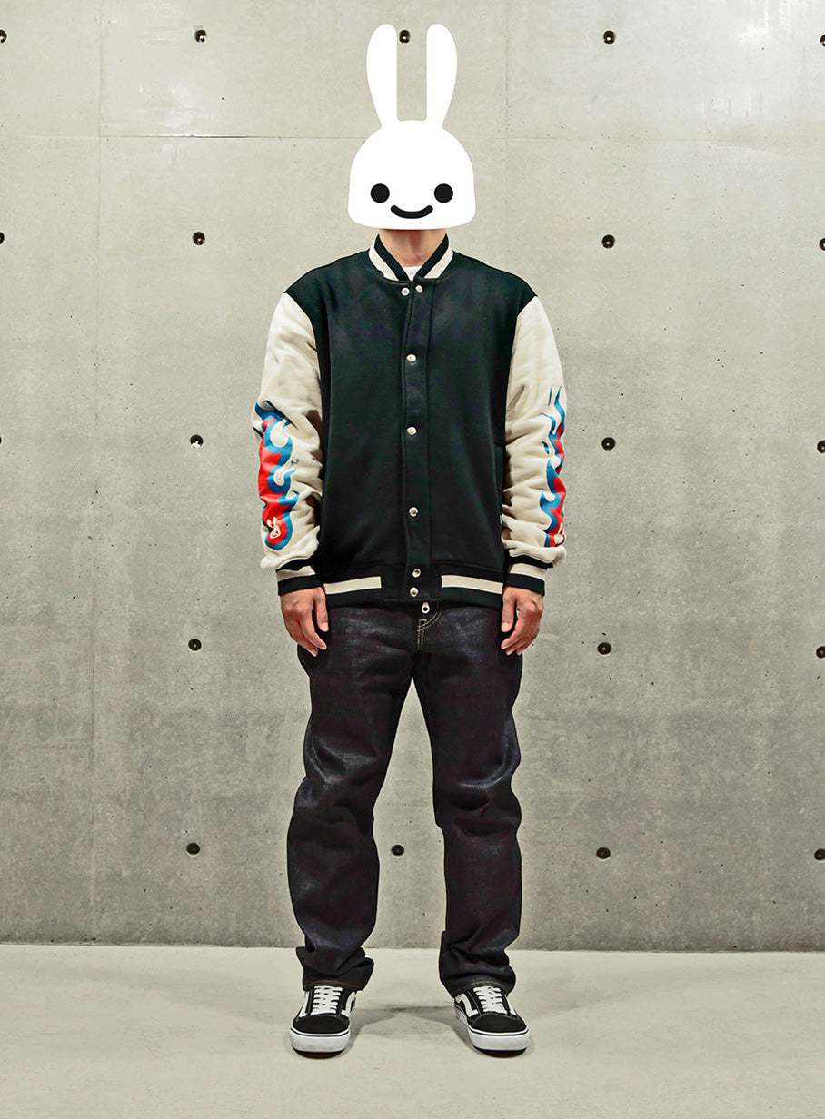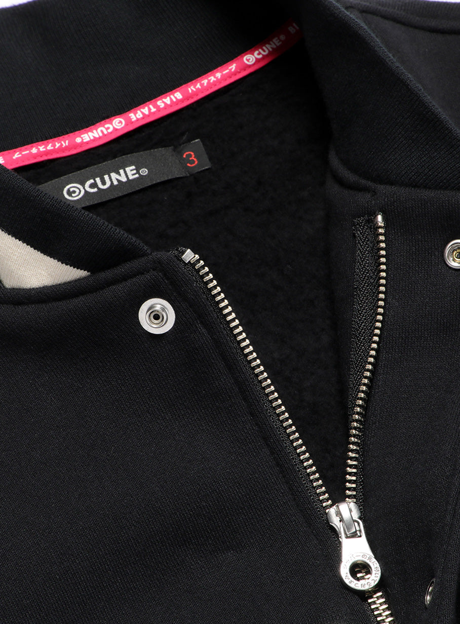 CUNE27周年を記念して作られた27周年スウェットスタジャン。起毛裏毛のスタジャン。 前あきにはファスナーとオリジナルスナップボタンを使用しています。 身頃の脇と袖にはあまり意味のなさそうなダーツが入っています。