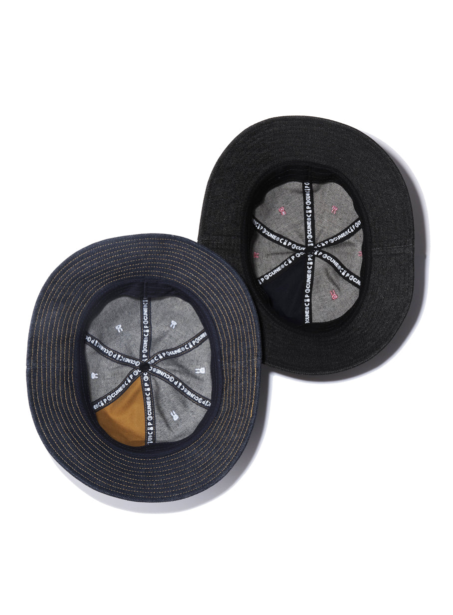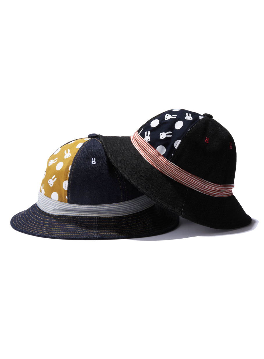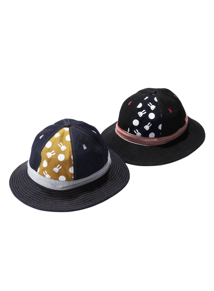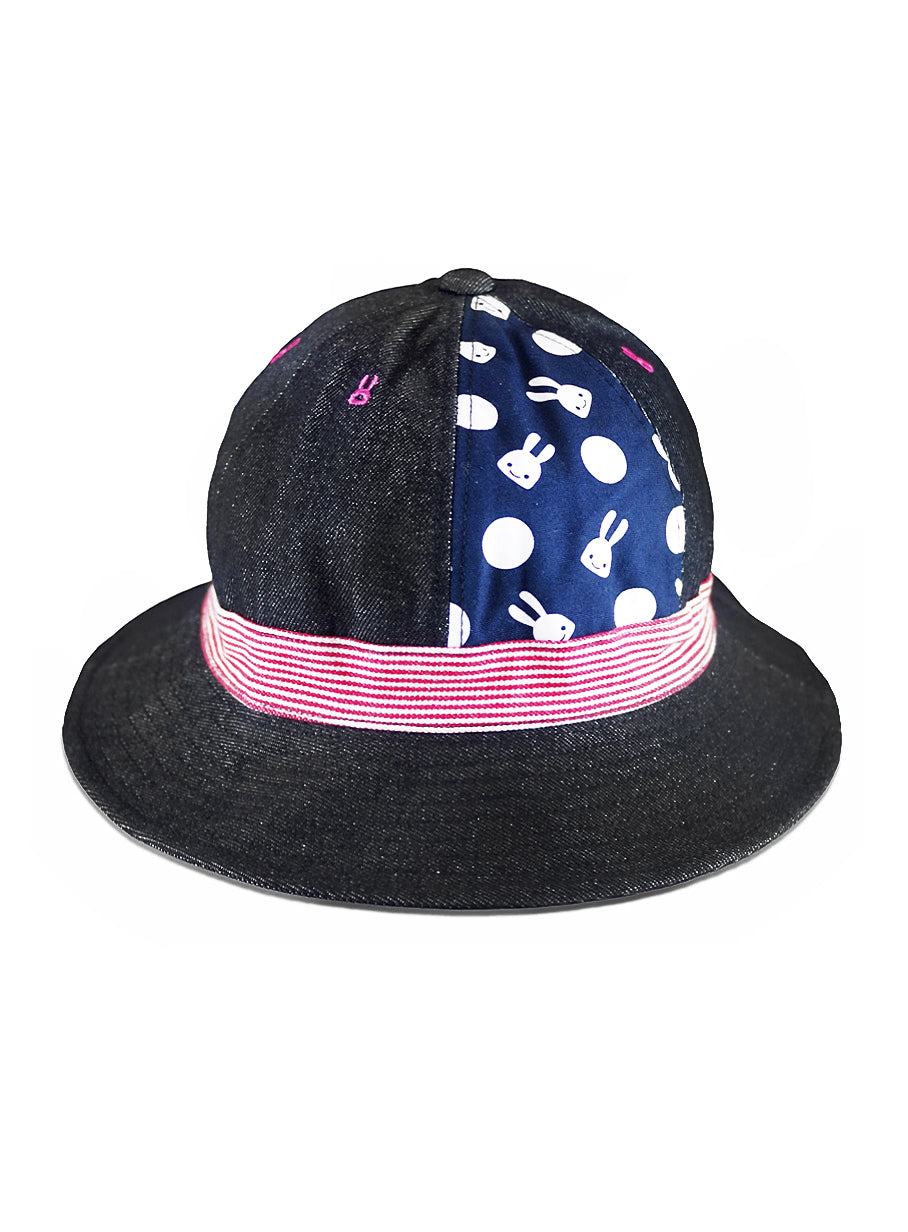 6パネルのデニム切り替えハットです。1パネルだけウサギと水玉の総柄になっています。