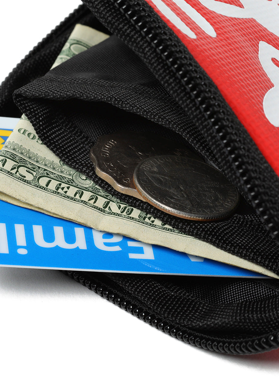 ターポリンの素材を使用したL字型のミニウォレット。内側は仕切りが一つとカード入れが3ポケット付いています。