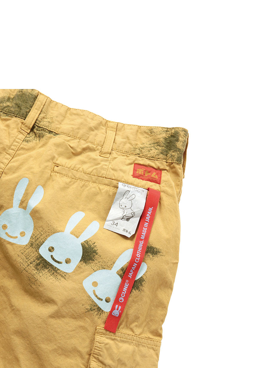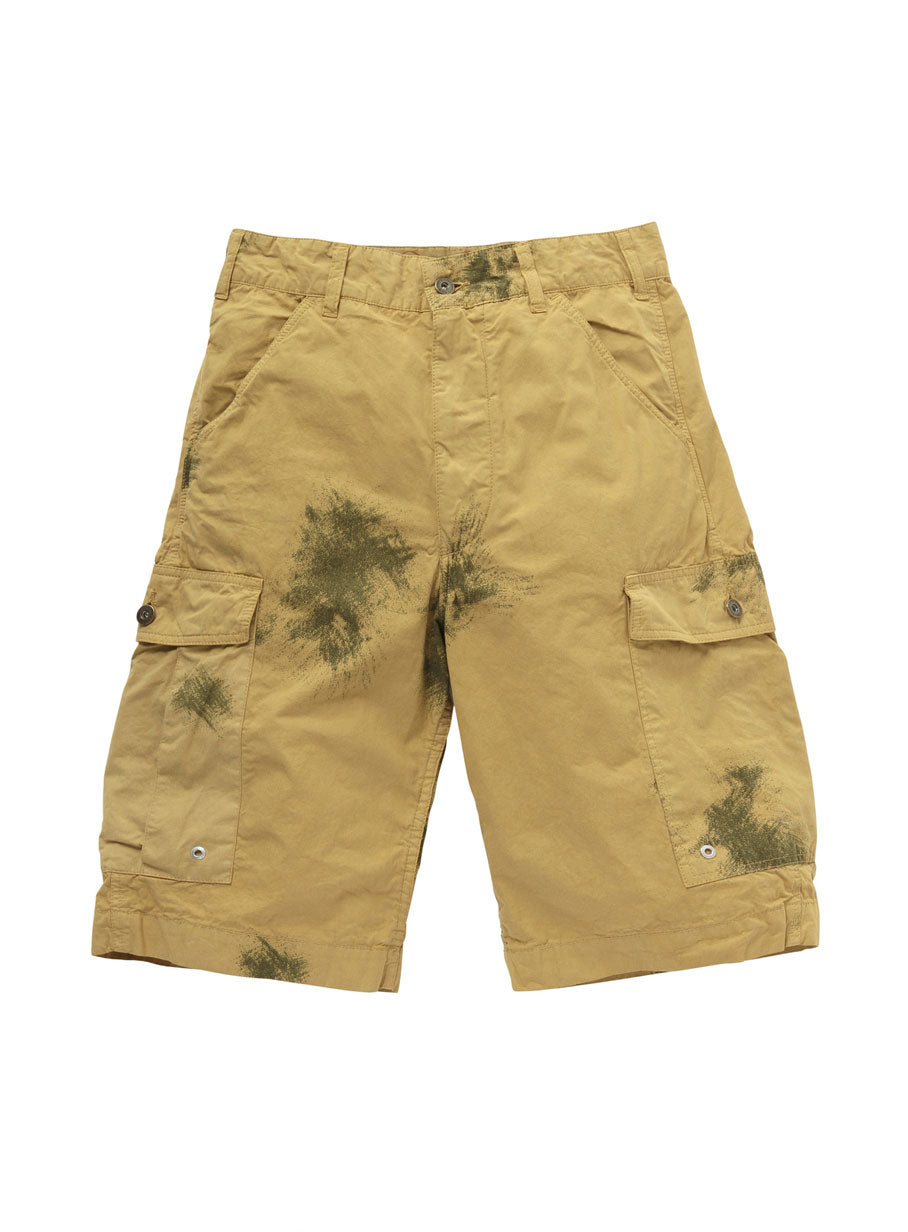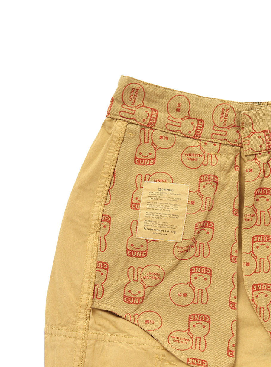 60年代のドイツ軍スノーカモ柄の高密度タイプライター生地をパンの色に製品染めしたカーゴショーツ。裏地もオリジナルの生地を使用しています。この商品はCUNE実店舗で過去に発売された商品です。現在CUNEの実店舗では販売されておりません。