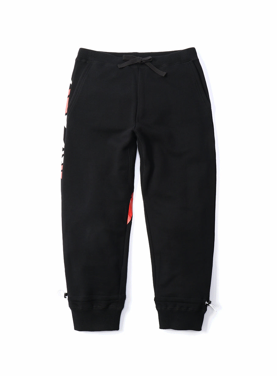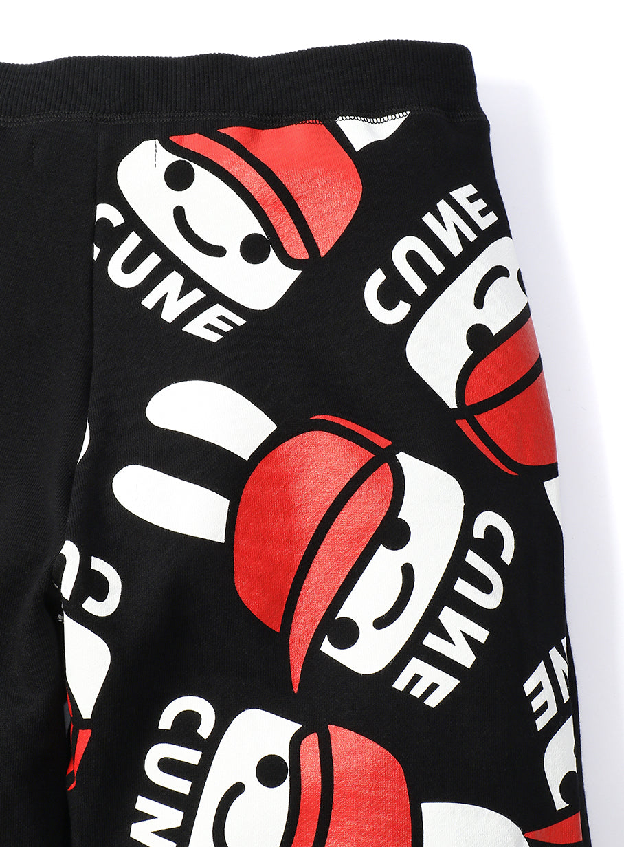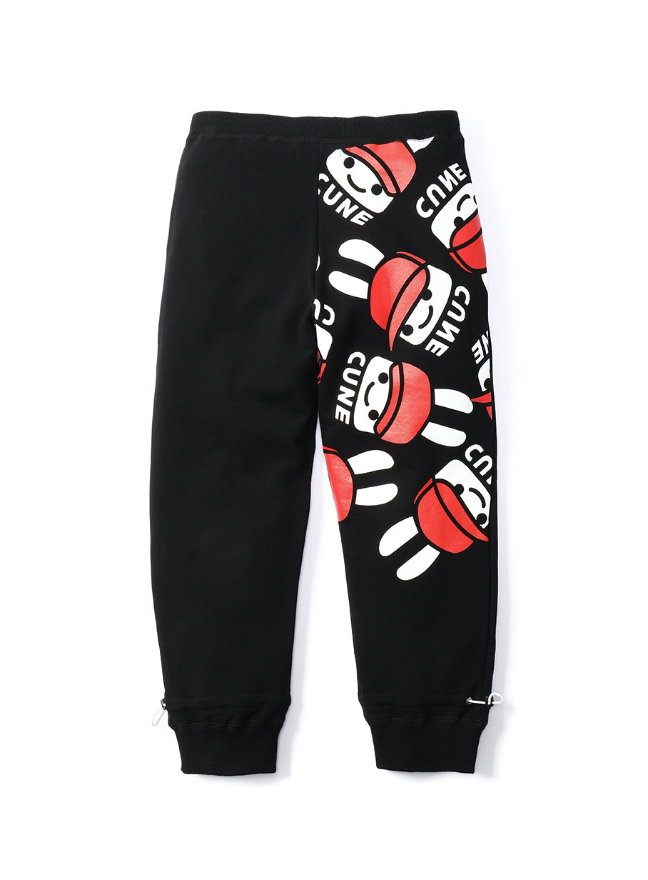 オンラインストア限定のスウェットパンツ。裏毛の生地にオンラインストア限定デザインの帽子ウサギをプリントしています。プリント範囲は後ろ右上のみです。丈は8分丈になっていてドローコードで調節できます。股下にガゼットクロッチがあるので動きやすいです。この商品はCUNE ONLINE STORE限定商品です。CUNEの実店舗では販売しておりません。