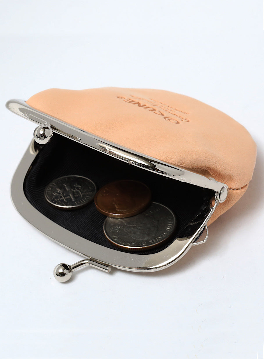 国産皮革「栃木レザー」を使用したがま口コインケース。※本商品は天然皮革を使用しています。 天然皮革は革本来のシミや皺、色ムラ、小さな傷等がある場合がありますが、天然皮革である証としてご理解ください。 革の個性による返品・交換は承りかねますので、あらかじめご了承ください。