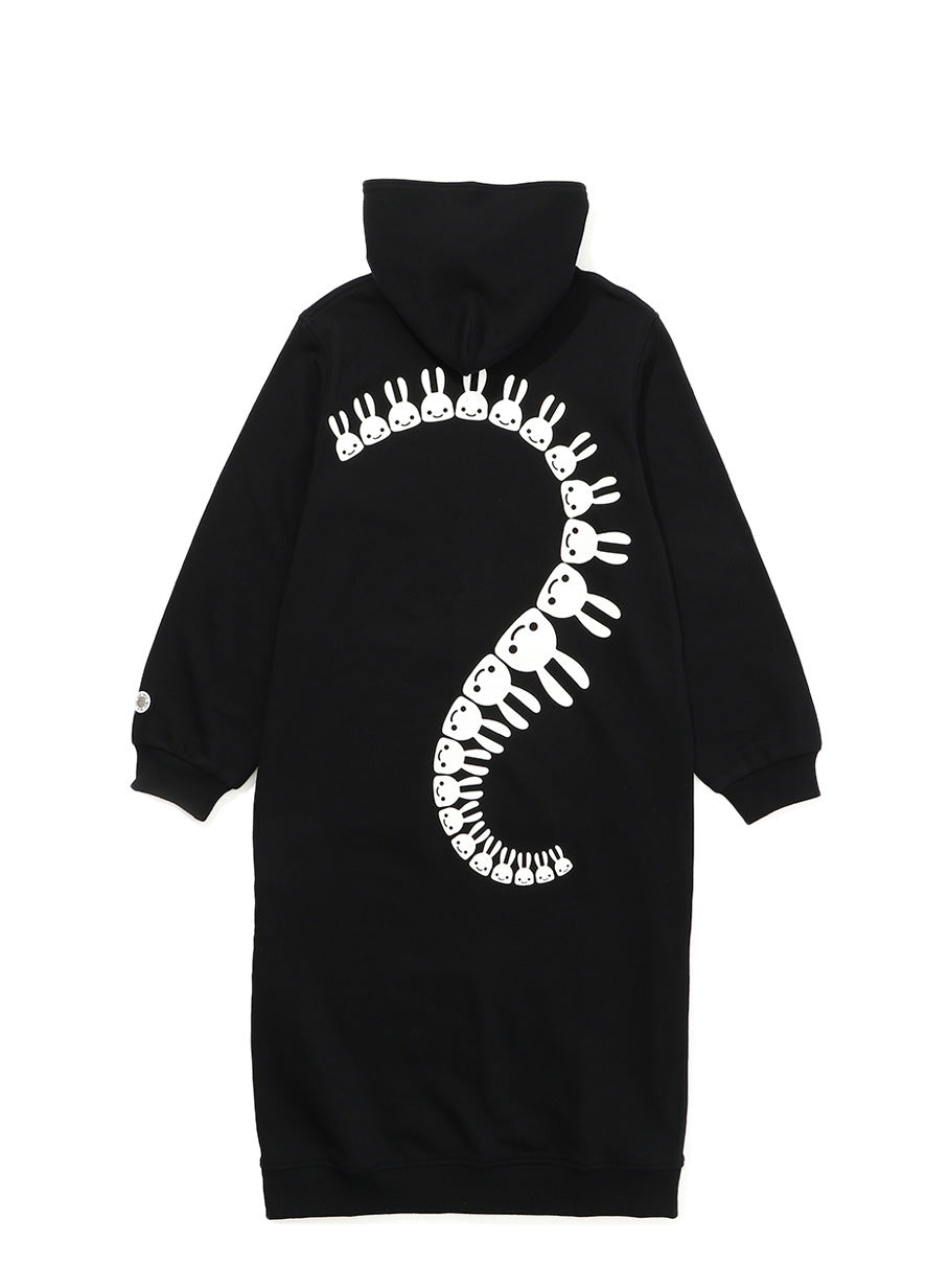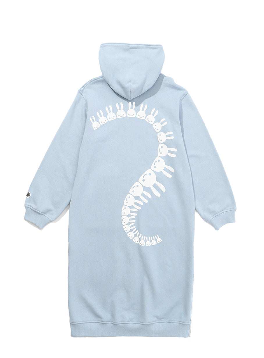 女性のロングジップパーカー。サイドにはスリットになるファスナーがついています。ステッチやバイアステープなど細かい部分にこだわっています。