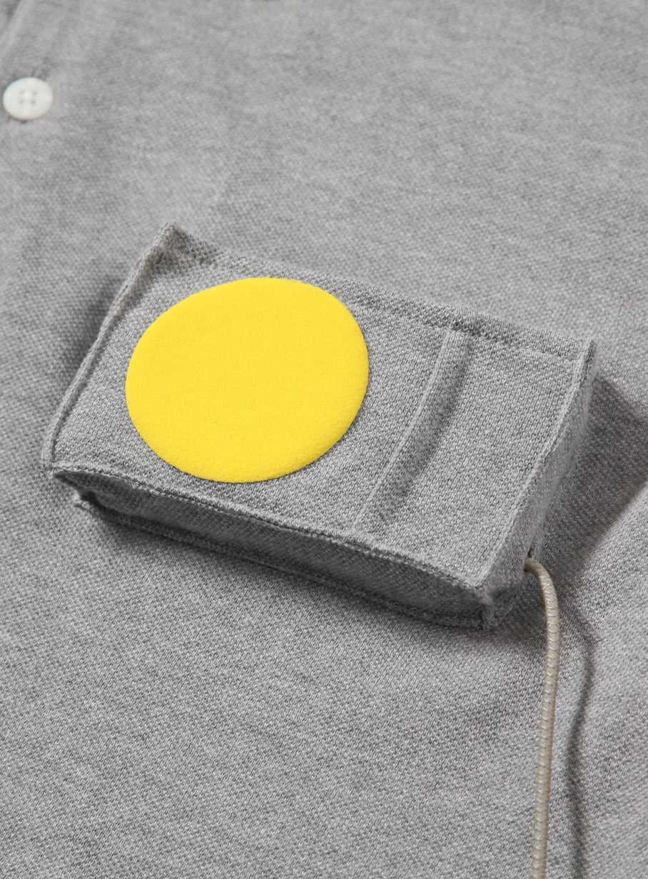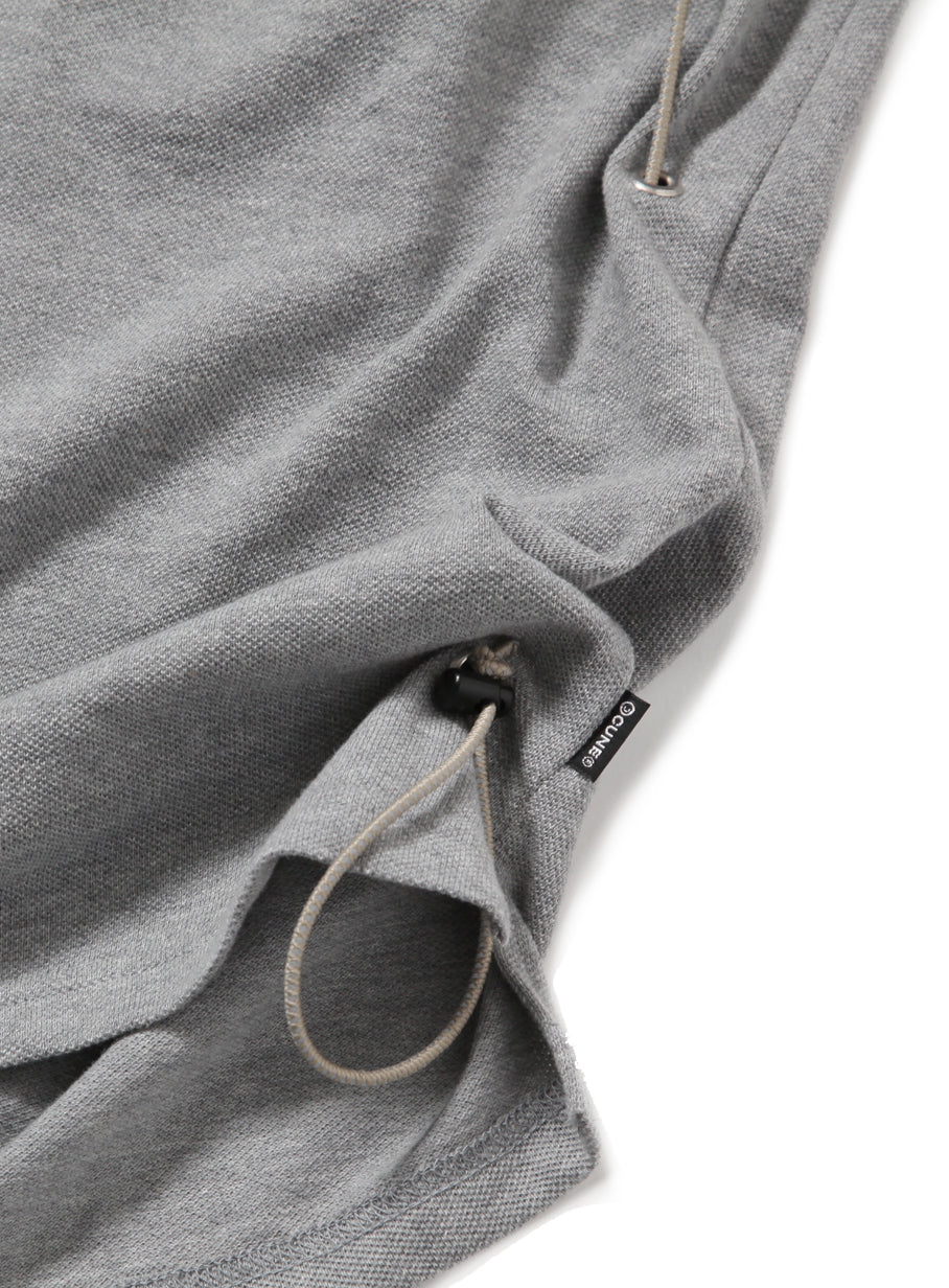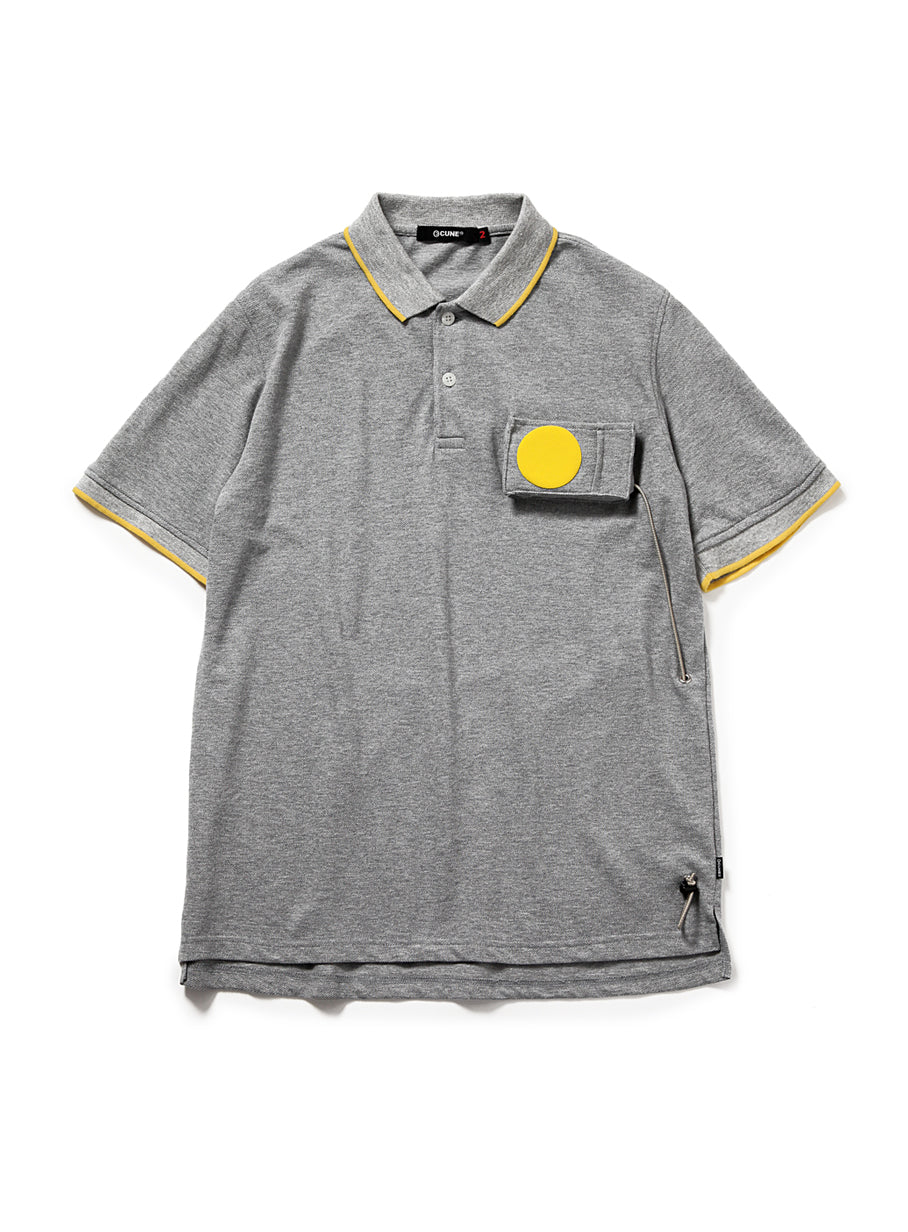 胸に室外機をイメージしたポケットがついたポロシャツ。胸から室外機のホースが出ていますが、これはドローコードのようなもので裾から出てる紐を引っ張ると裾が縮まります。ポロシャツとしてはとてもベーシックな作りになっています。?この商品はCUNE実店舗で過去に発売された商品です。現在CUNEの実店舗では販売されておりません。