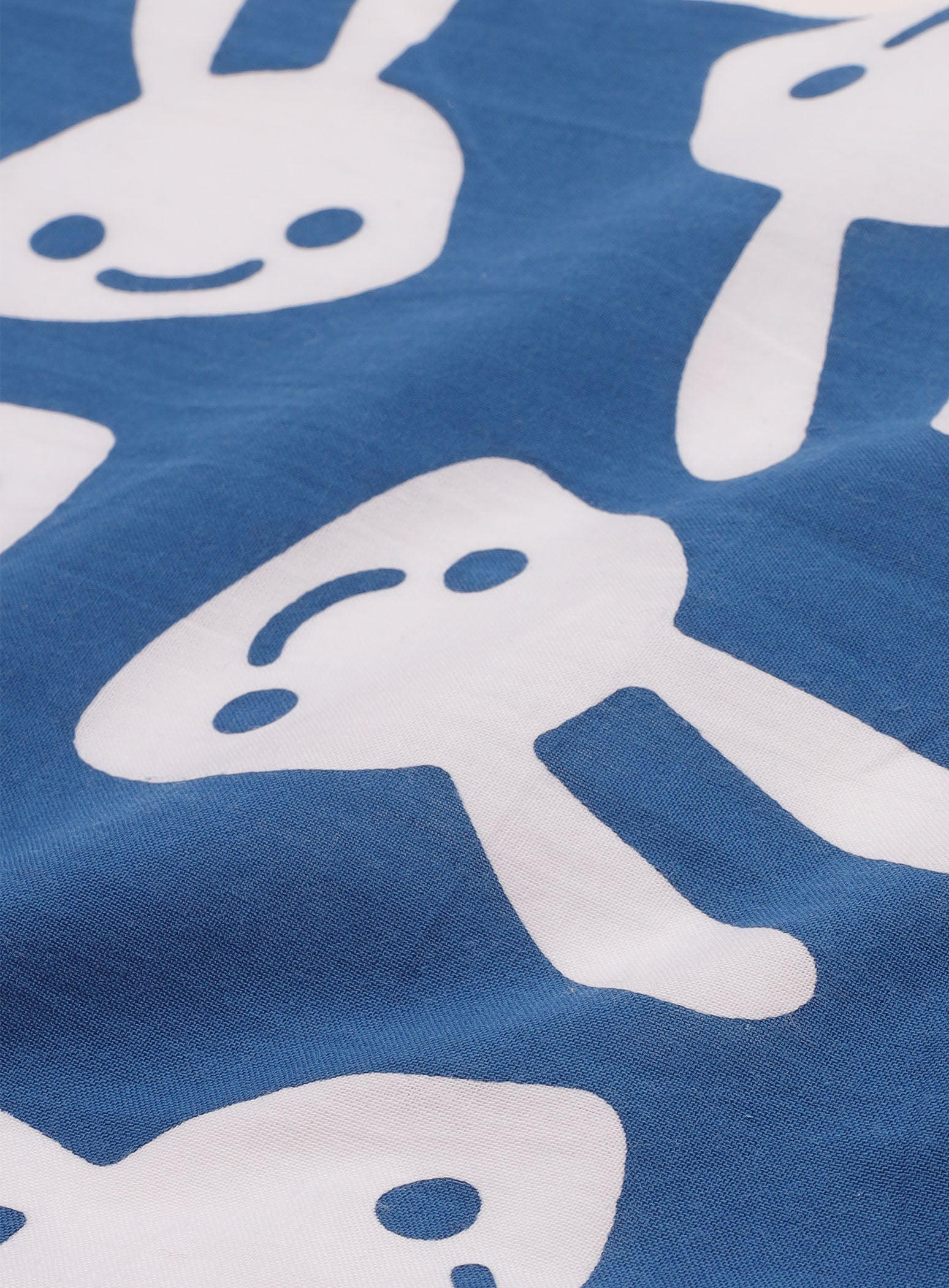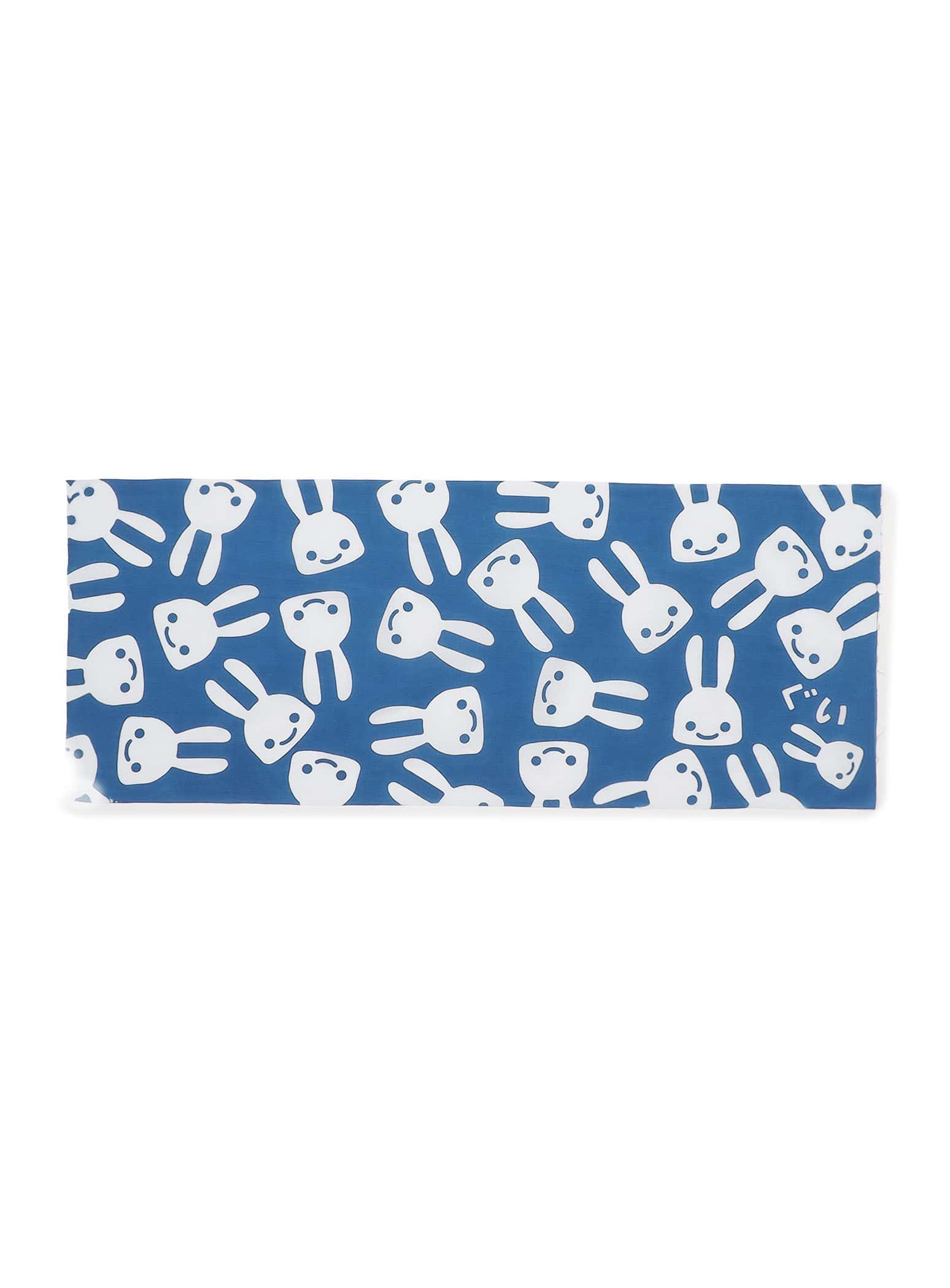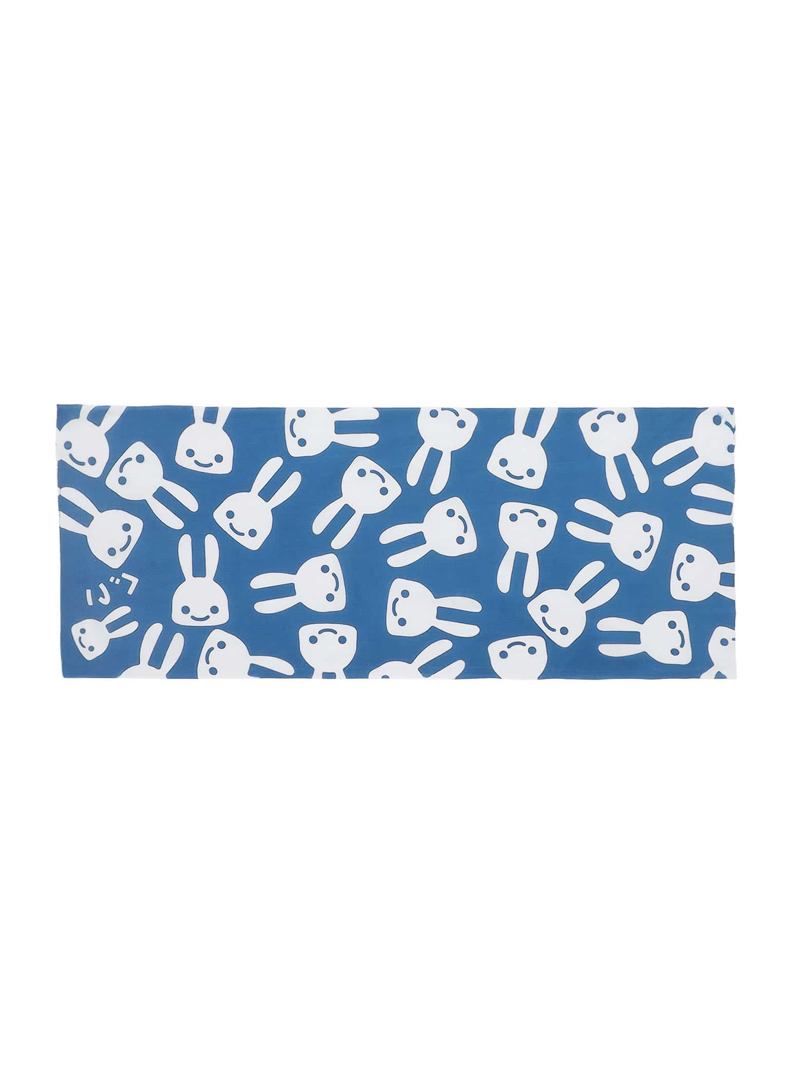 ウサギがたくさんいるてぬぐい。注染という技法を施しており、染色時にできるぼかしやにじみから一枚ずつ風合いが異なります。