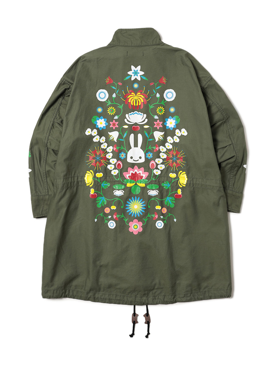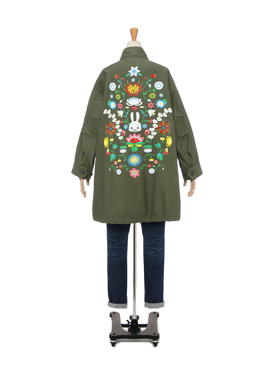 M-65のようなビッグシルエットのミリタリージャケット。着やすい厚みのモールスキンを使用。ワンウォッシュ仕上げ。